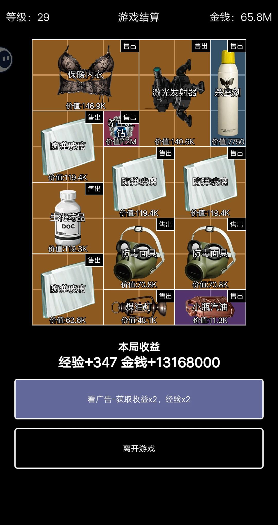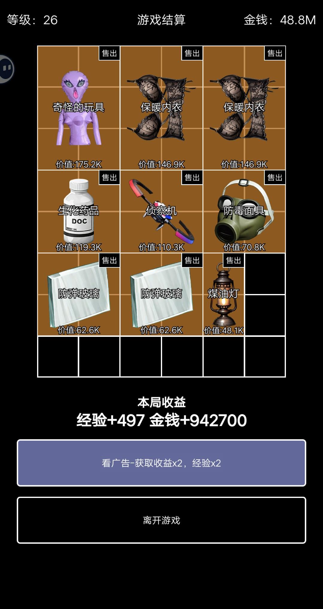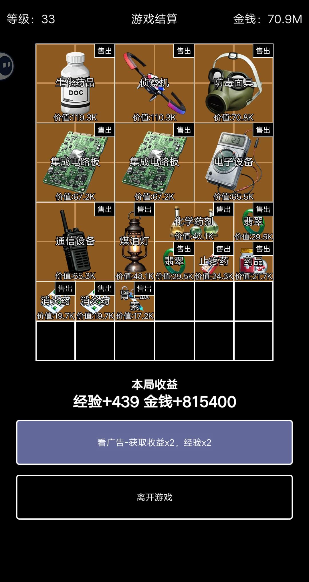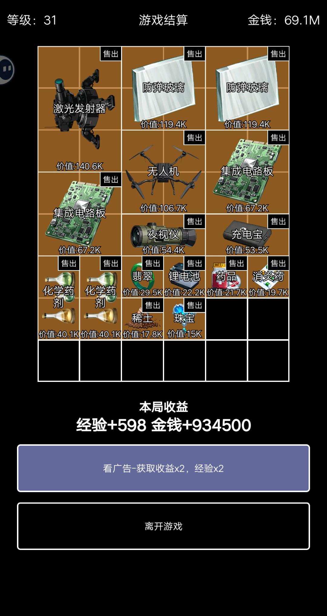 1.加一个仓库功能,摸到的大红都没办法放,只有卖掉的话就太可惜了2.使用钥匙和背包会打乱掉,这个bug建议修一下,在撤离时背包是乱的话,有些东西是会被卡掉的3.加个图鉴功能和新的大红,感觉见到的物品好像就这几个,有点无聊4.地图的话太单调了,能不能再添几个地图和房间类型,并且钥匙爆率不高,有时候好几个房间都开不了,可以增加一个购买钥匙并且保留的功能,以免下次进地图时要看脸气去开房间,而且如果