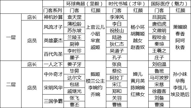1.抖音小程序版本的游戏创建角色只能是男性角色,考不考虑完善一下?给老服玩家发张性别转换卡?2.超群门客角色的属性分配好像有一丢丢问题?坚毅属性的有5个,才华的6个,魅力的才4个。咱能不能平均分配下?糕点铺那些虽然不主要升,但是均分下员工,看着也可以舒服点啊。3.红颜角色图鉴里好像不全?坚毅店铺二层的缘分是四个,但是在图鉴里能直接看到的只有三个,没有李婉约。4.招募池子的时间是不是不大对?900+天?准备一直不换池子了么?5.有关于门客和红颜获取界面的数量,麻烦问一下划分的原则是?就三个属性的分配,数量均分不好么?门客总数81,能被3整除,暂且不看,传奇7个,超群22个,非凡1个?怎么分的?苏小二,厨神那些刚开局不是绝世的,能不能等他们升完绝世,再算进数量呢?红颜总数40怎么算的?现在是三个属性店铺,一层四个,各两层,共24个,加上冬香、优伶和巫女,这一共是27...你设置个39或者42看着也好点啊...