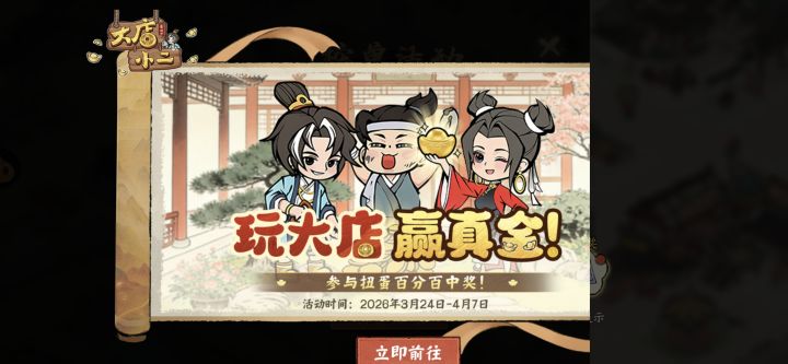 回到古代当掌柜,手握科技开大店!《大店小二》今日已正式公测上线!穿越之旅即刻启程—— 分享有礼参与公测分享活动,赢50元京东卡! 活动时间即日起 - 2026年3月31日23:59参与方式①分享本推文至任意社交媒体,并截图发送至评论区②在本推文评论区留言你的游戏昵称和区服信息以上二项均完成后,才算成功参与活动喔~活动奖励我们将在评论区随机抽选5位幸运的时旅者送出50元京东