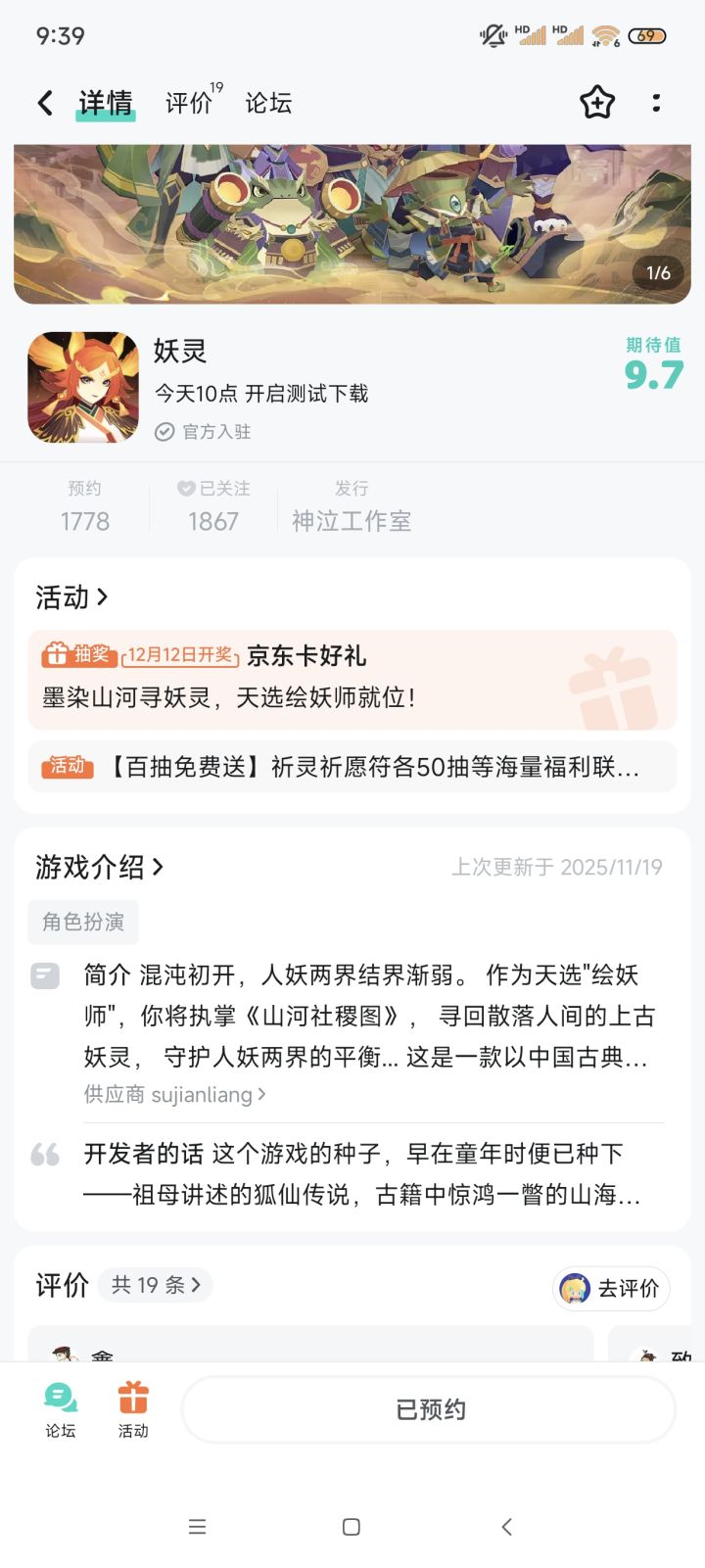混沌初开,人妖两界结界渐弱,山河社稷图的碎片散落人间……❄️各位天选 “绘妖师”,欢迎来到《妖灵》的世界!在这里,你将执笔画江山,在写意水墨勾勒出的东方幻境中,邂逅青丘九尾、应龙雷兽等传说中的上古妖灵。这不仅是一场收妖之旅,更是一段充满诗情画意的国风奇遇。🍃为了让大家在这个冬天更有灵感寻回妖灵、守护两界平衡,我们准备了冬日暖心福利!🎁🎁 活动奖励活动结束后将抽取 1 位天命绘妖师 获得1