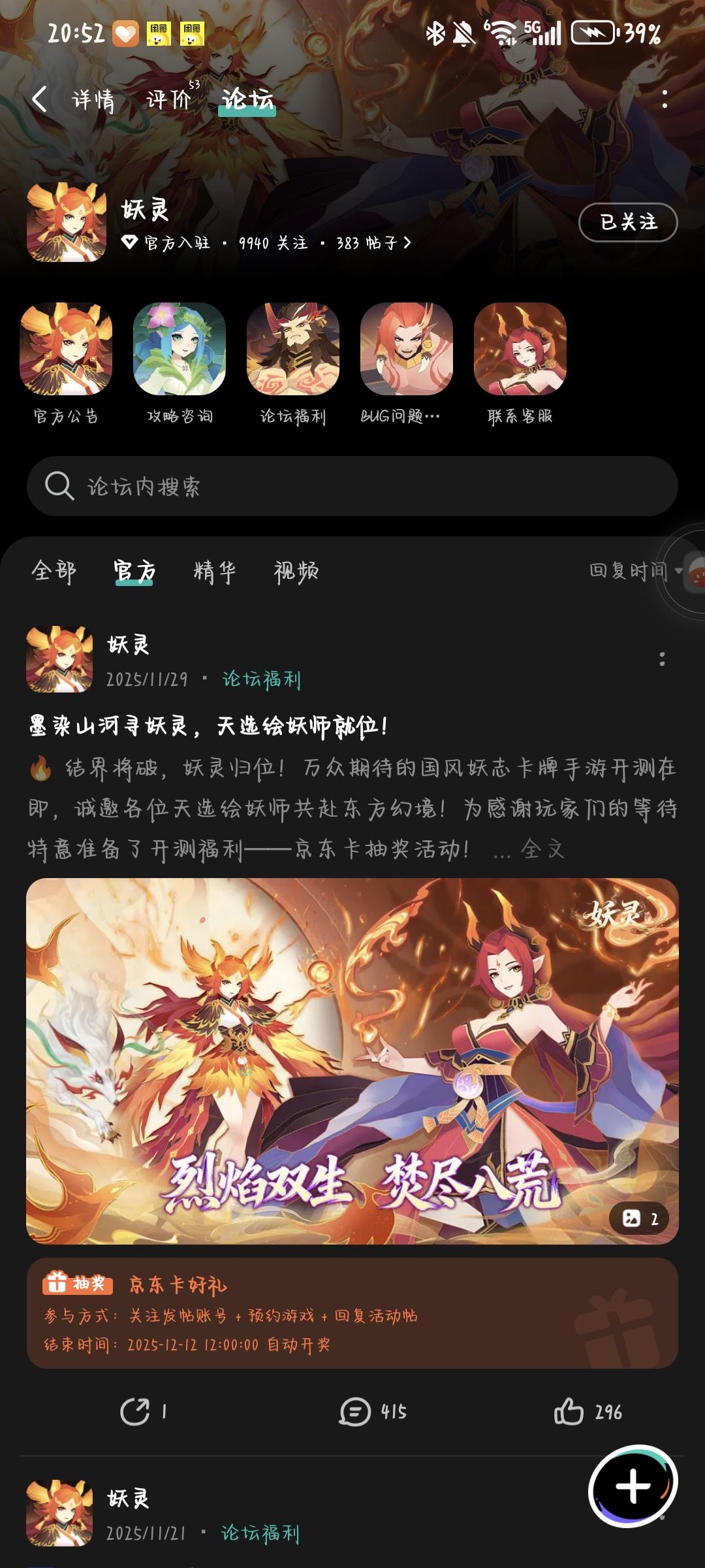 🔥 结界将破,妖灵归位!万众期待的国风妖志卡牌手游开测在即,诚邀各位天选绘妖师共赴东方幻境!为感谢玩家们的等待特意准备了开测福利——京东卡抽奖活动!开测时间:2025年12月1日 10:00▶ 参与方式1.点击关注发帖账号并预约《妖灵》且发新帖晒截图2.在本帖下方评论区分享发帖链接即可【奖品发放】到达开奖时间后,由taptap系统随机抽取符合要求的幸运玩家,自动发放兑换码(对于同一账号