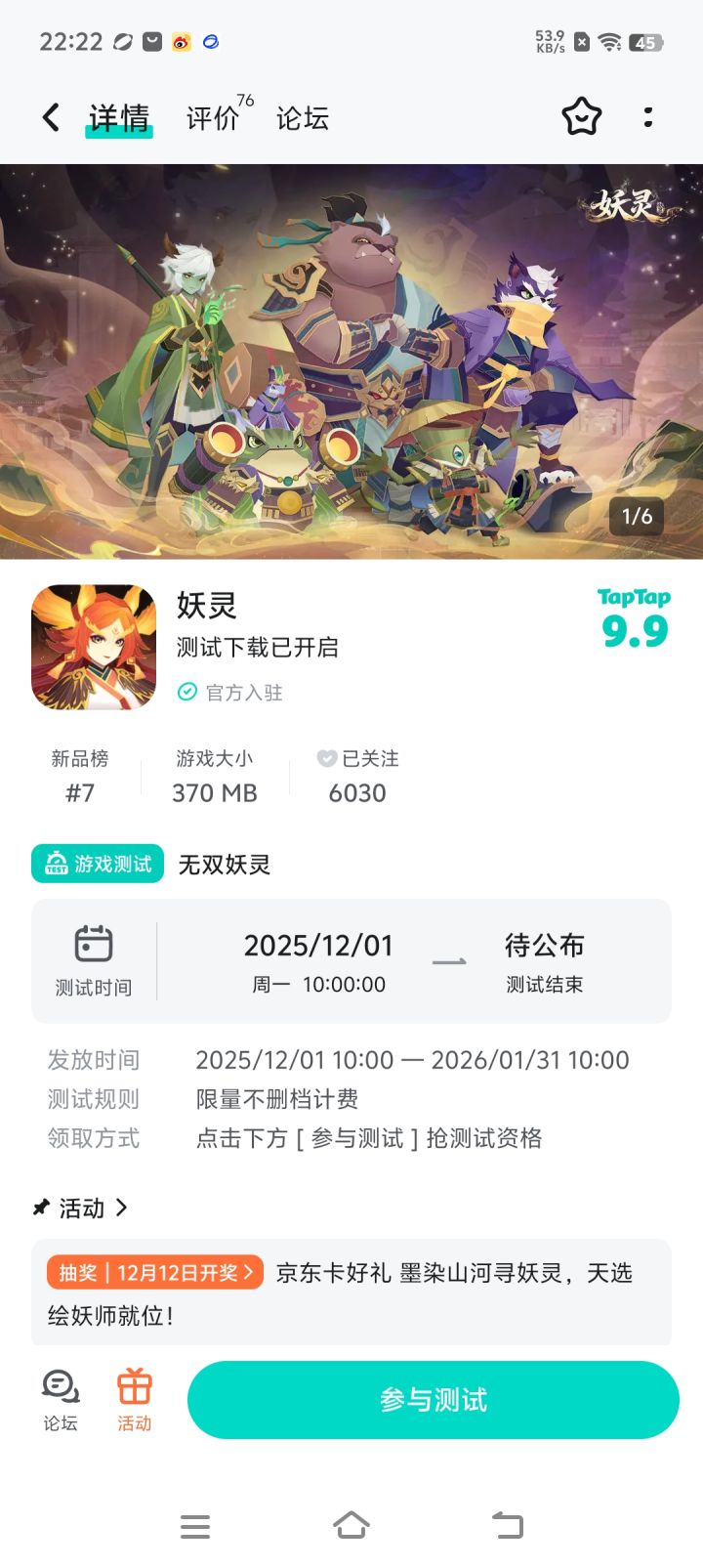 混沌初开,人妖两界结界渐弱,山河社稷图的碎片散落人间……❄️各位天选 “绘妖师”,欢迎来到《妖灵》的世界!在这里,你将执笔画江山,在写意水墨勾勒出的东方幻境中,邂逅青丘九尾、应龙雷兽等传说中的上古妖灵。这不仅是一场收妖之旅,更是一段充满诗情画意的国风奇遇。🍃为了让大家在这个冬天更有灵感寻回妖灵、守护两界平衡,我们准备了冬日暖心福利!🎁🎁 活动奖励活动结束后将抽取 1 位天命绘妖师 获得1