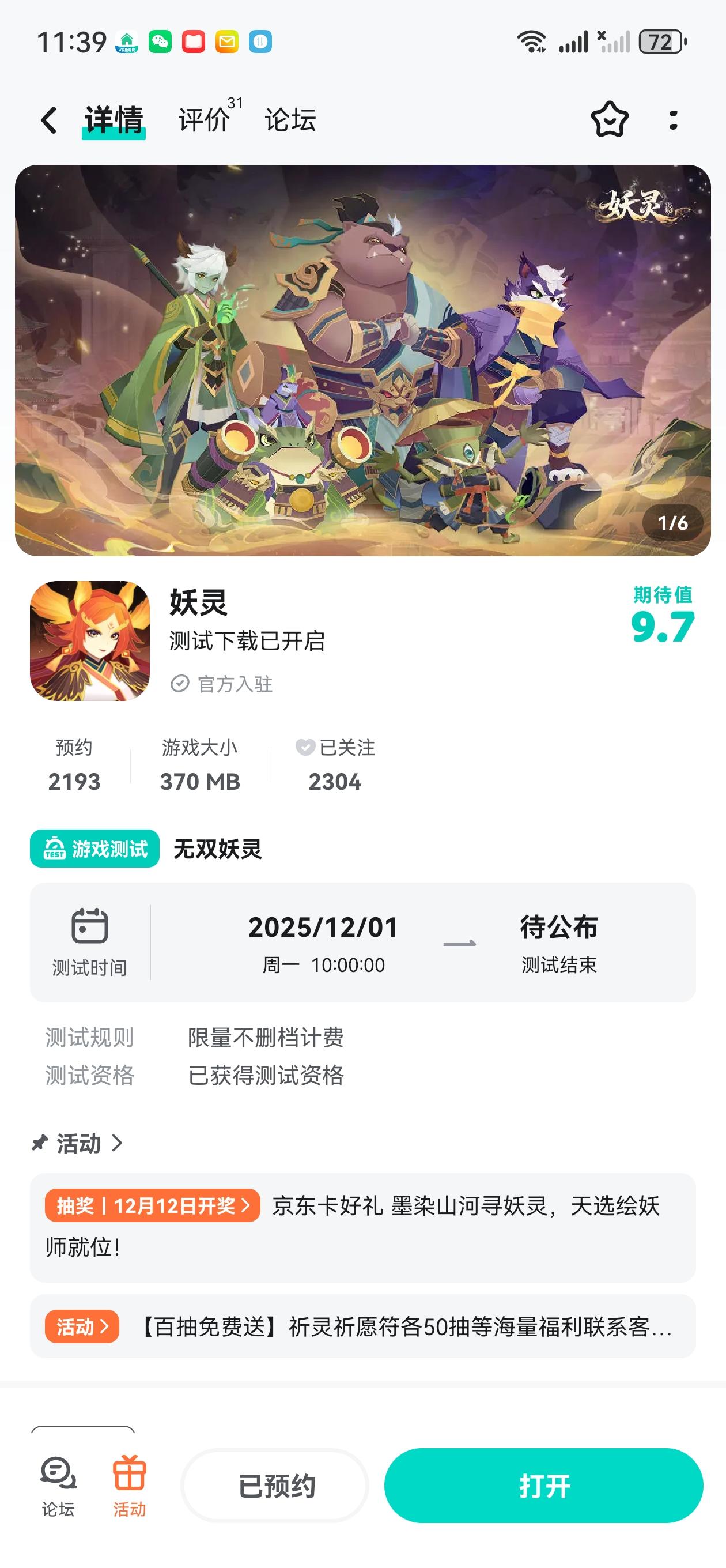 🔥 结界将破,妖灵归位!万众期待的国风妖志卡牌手游开测在即,诚邀各位天选绘妖师共赴东方幻境!为感谢玩家们的等待特意准备了开测福利——京东卡抽奖活动!开测时间:2025年12月1日 10:00▶ 参与方式1.点击关注发帖账号并预约《妖灵》且发新帖晒截图2.在本帖下方评论区分享发帖链接即可【奖品发放】到达开奖时间后,由taptap系统随机抽取符合要求的幸运玩家,自动发放兑换码(对于同一账号