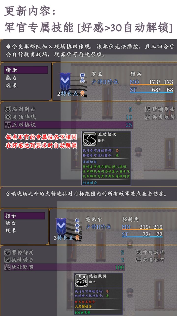 现在是到底有啥效果没有说明只能一个个试就很不友好了,同样像是在商店买高级兵种技能的时候也没有技能说明。