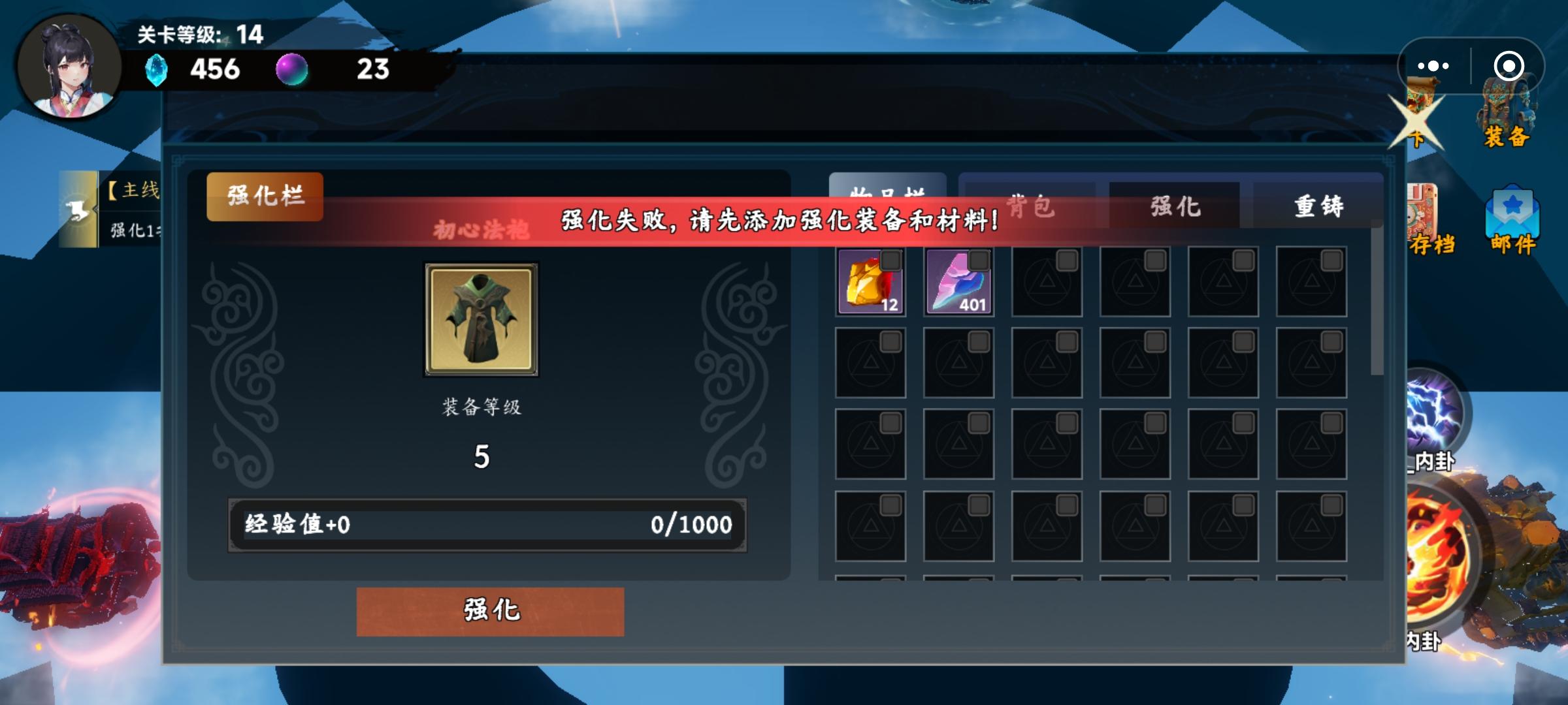 任务11的强化装备如何操作?这个分解装备的太初石头是强化石嘛?点了装备强化也没用啊?商城也没看到强化装备的东西?