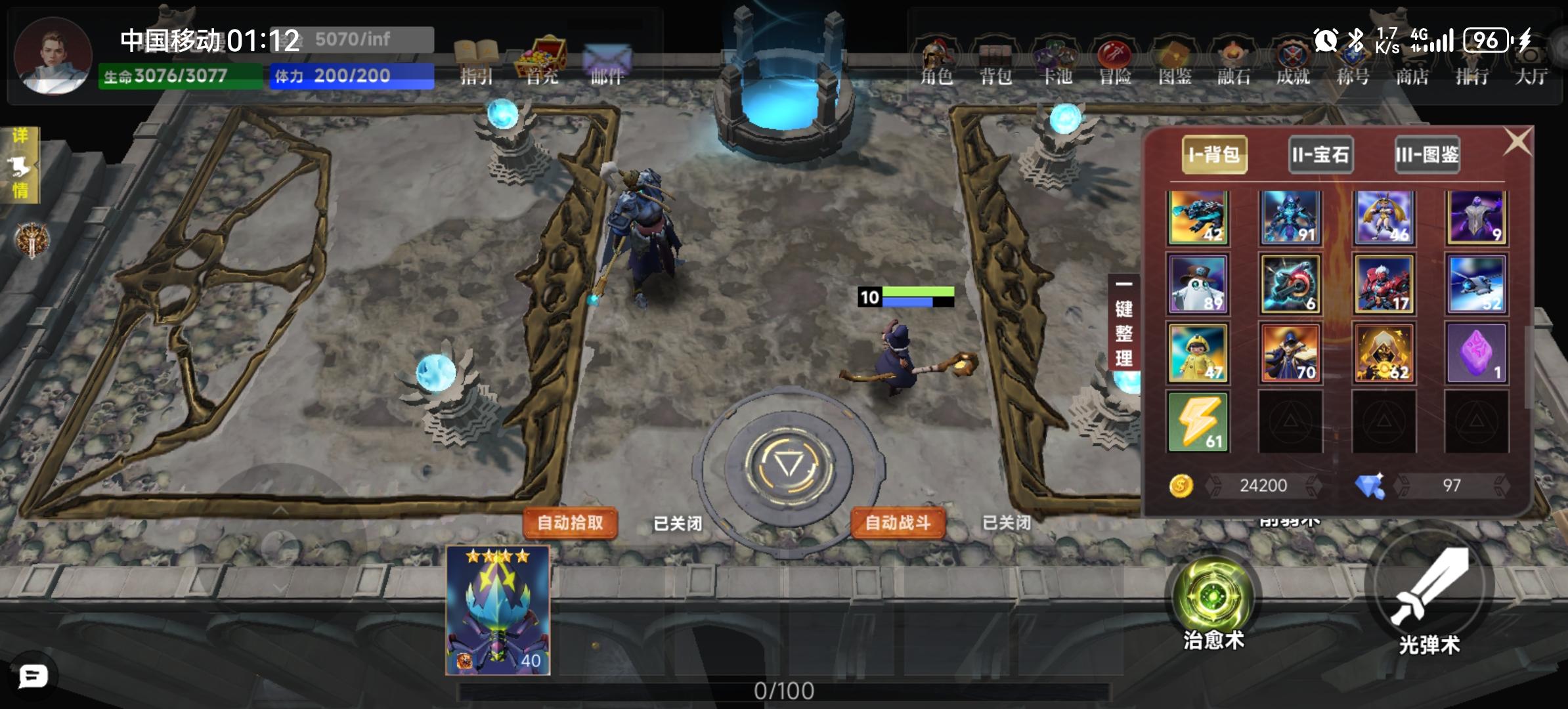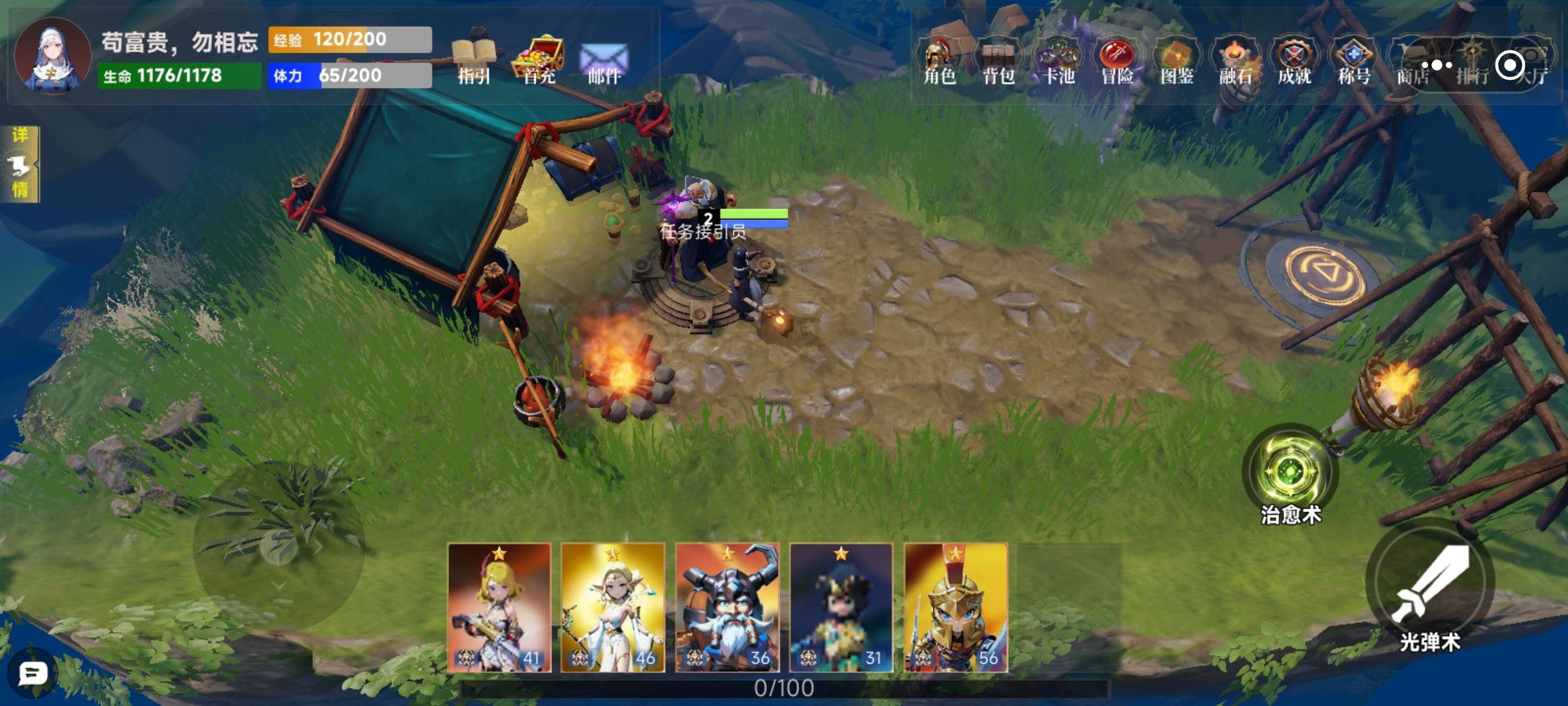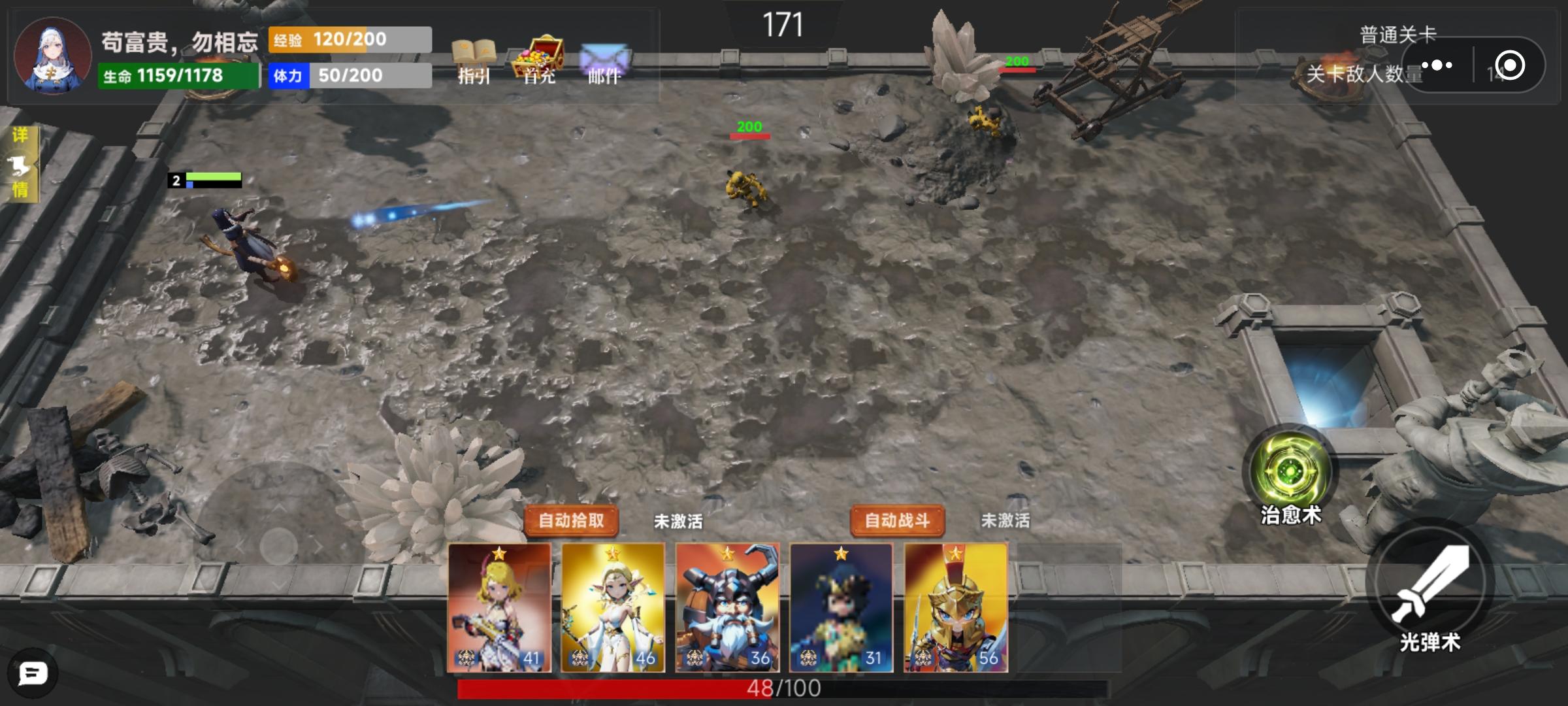 开局别默认选到剑士,牧师就无忧通关了。 跟着主线走,关卡掉的钻石,金币全赞着,主线做完不够6000金币 ,就拿关卡掉钻石商店换金币1:100,换够6000商店买双倍钻石120。然后120钻石换金币,买牧师1+2技能,然后在推下图买完3技能,就可以无忧通关体验了,千万别默认选到剑士