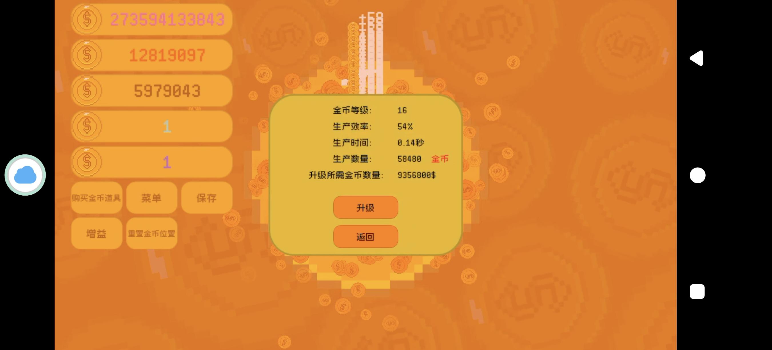 游戏机制:开始设计这款游戏时以放置挂机为核心玩法设计的,游戏内金币道具会在每隔一段时间自动产出金币,你可以利用金币升级你的金币道具,升级后的金币道具会提升生产效率及减少生产时间,等级是有上限的目前是15级,但是后续可能会对其做调整,在几天后会进行篝火测试欢迎大家一起来玩,之后的一些内容都是围绕核心玩法设计的有增益,每日任务,成就等,增益机制增加了游戏的策略性你需要在三组增益中选择一种,增益效果会持