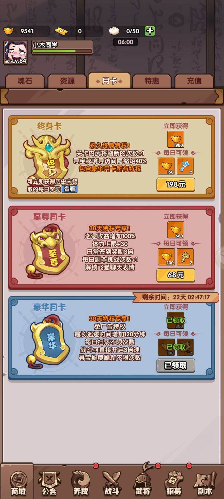 剑和弓月卡党首选,其他系就别碰了,存招募令和神奇钥匙,苟住就能玩