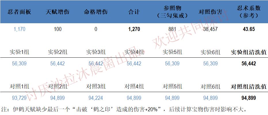一、伊鹤忍术解析 1.忍术系数测算:先看图,图1为测试基础面板(没带任何忍术加成的宝物,但是天赋中有一个+100忍术攻击力的,这个由于我的疏忽)所以测试的忍术面板为4131+100+870=5101; 图2为忍术打满系数(千鹤舞三字精准点击)203256/5101=39.84 近40系数 2.忍术机制介绍:伊鹤大招分为两段,第一段在身后生成四个圆圈,其中会召唤出源源不断的纸鹤,纸鹤可以清理弹幕但