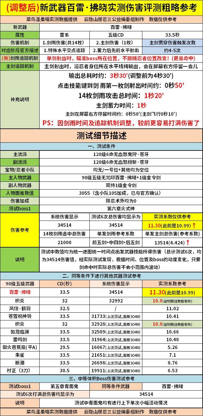 【1.28更新后最新山居评测站】新武器百雷·拂晓实测伤害评测粗略参考(仅供参考)