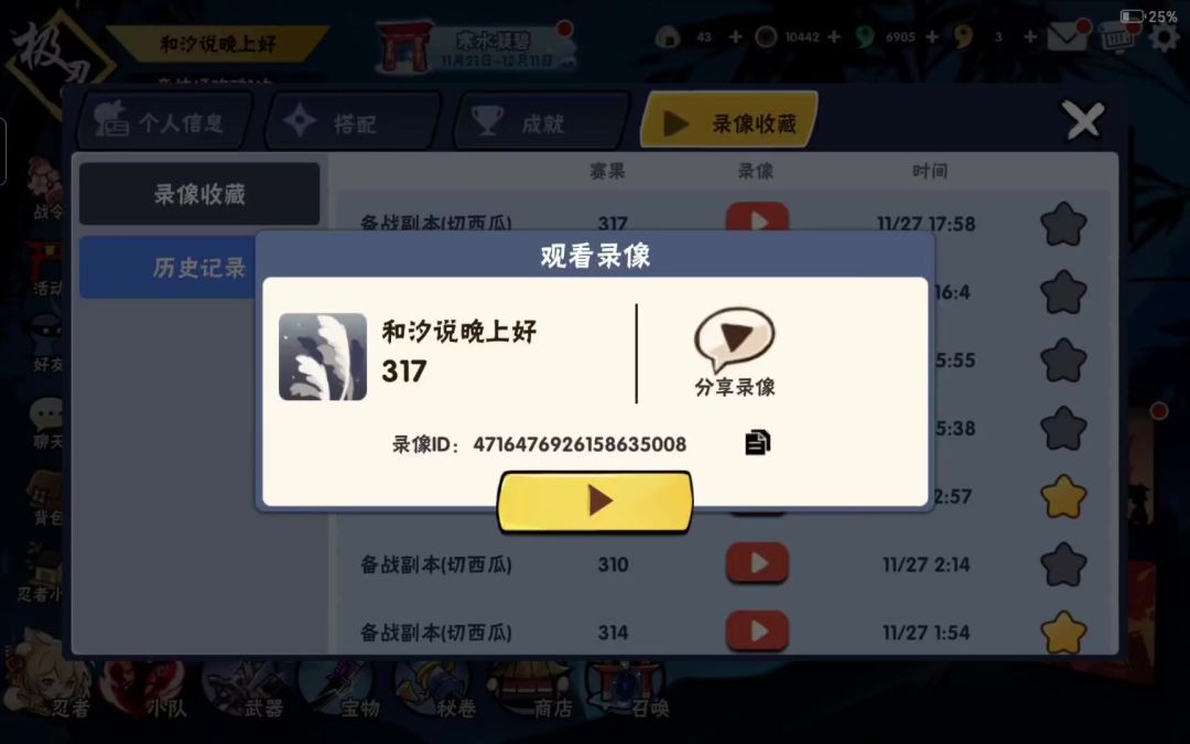 [表情_微笑]抽奖及资源 隼白350抽12金6隼,180其他碎片,10隼碎片 9.3成功五命,修炼到新年出新忍再加上20自选,刚好六命 武器只有一把95烬灭,吃大保底了180抽出八金歪七,之前凑毛笔百级没留钥匙,可以当个教训[表情_困]咒印还是礼包强行凑的,累充给了双刀去升百级了 剩下了200张符,80钥匙 [表情_微笑]藏宝图 藏宝图花费6300勾玉结束 14+6商店四次 2000(原本摇摆,前