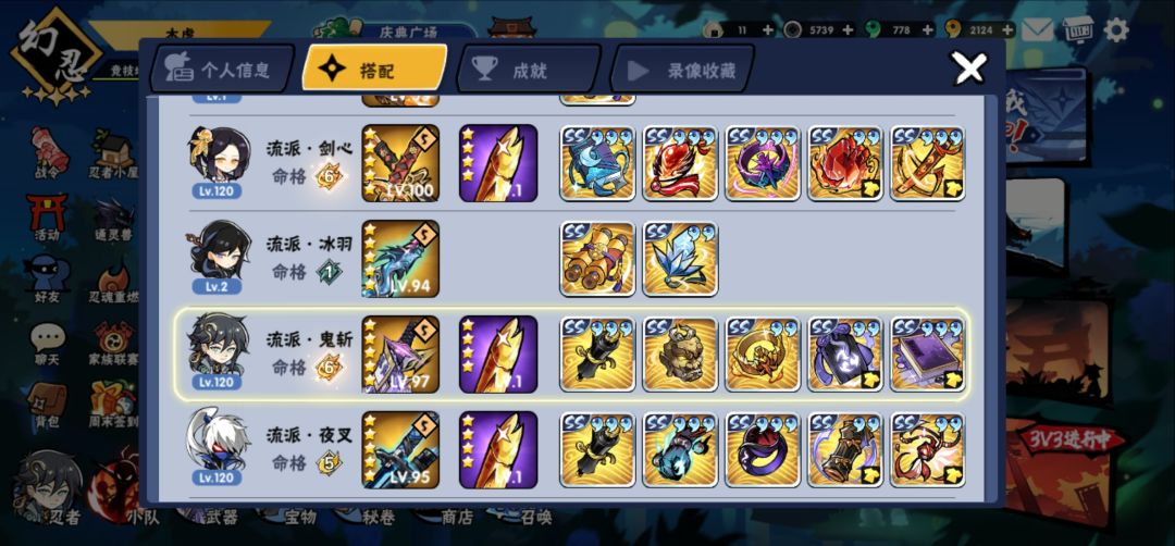 众所周知,忍三为玩家更便捷地调整自己的备战武器宝物,前不久上线了“装备搭配” 快捷功能,一般玩家都可以拥有五套方案,剩下的就需要用勾玉解锁,那么本帖就将教你如何巧妙使用这个功能来减少用于33的搭配方案数!(适用于大多数平民玩家 全6命大佬有多种主副角色的肯定也不缺方案数) 先给大家看一下我自己小破号的装备搭配方案: 就很简单的三套 主牙副琳/主琳副椒/主牙副椒 我们这个方案的要领就是牢记每个图都需