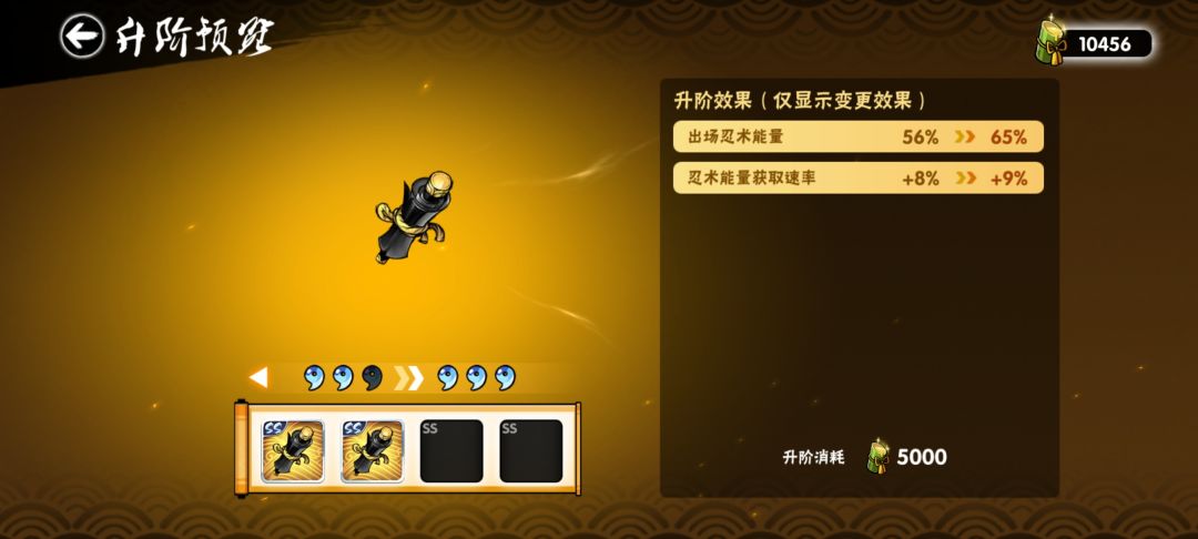 新版 1.【SS级通用宝物的“前置”宝物】 2.【SS级人物专属套装宝物的“前置”宝物】 所有忍者(流派)专属套装SS级宝物仅必需1同名S级宝物,该S级宝物合成无限制。 3.【S级“前置”宝物一览】 1.按照S级宝物成为前置宝物的数量进行了排序; 2.所有的S级宝物合成均不再需要特定A级宝物(逆袭悬赏令除外,未知) 4.【不知火舞专属套装宝物升阶消耗表】 1. 升阶需要的宝物2选其1 下面列出关于