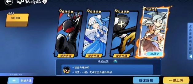 本文首发【忍者攻略组】公众号,未经授权禁止“抄袭文章”转载至其它平台。 嗨喽,我是你们的忍忍伙伴小石头,很多老玩家都不知道的再忍者必须死3中支援忍者有着什么样的作用,甚至都不知道小队的重要性,那么今天小编给大家详细说说! 一、小队搭配 每个忍者小队都可以由最多四位忍者组成,支援忍者最多可以编入2名,但是同一个忍者的不同流派是不可以加入小队的,忍者选择界面的流派切换将被移除,大家可以在小队界面直接选