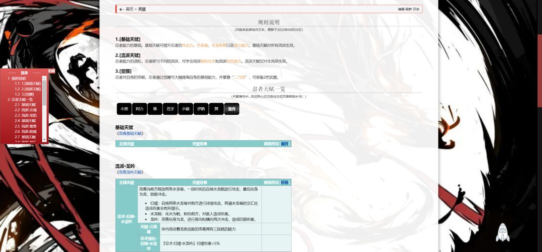 舞&洛青天赋列表上线藏室! 可惜室室没有洛青。 点击即可查阅。 天赋所需的纹石和觉醒石暂未完全记录。 由于前期天赋调整,调整的忍者天赋所需也未完全记录。 目前记录了流派·星闪的天赋所需。 其他流派及基础天赋解锁所需靠大家了。 欢迎忍忍加入我们~ 下一次帖子再见👋🏻 不要喷室室