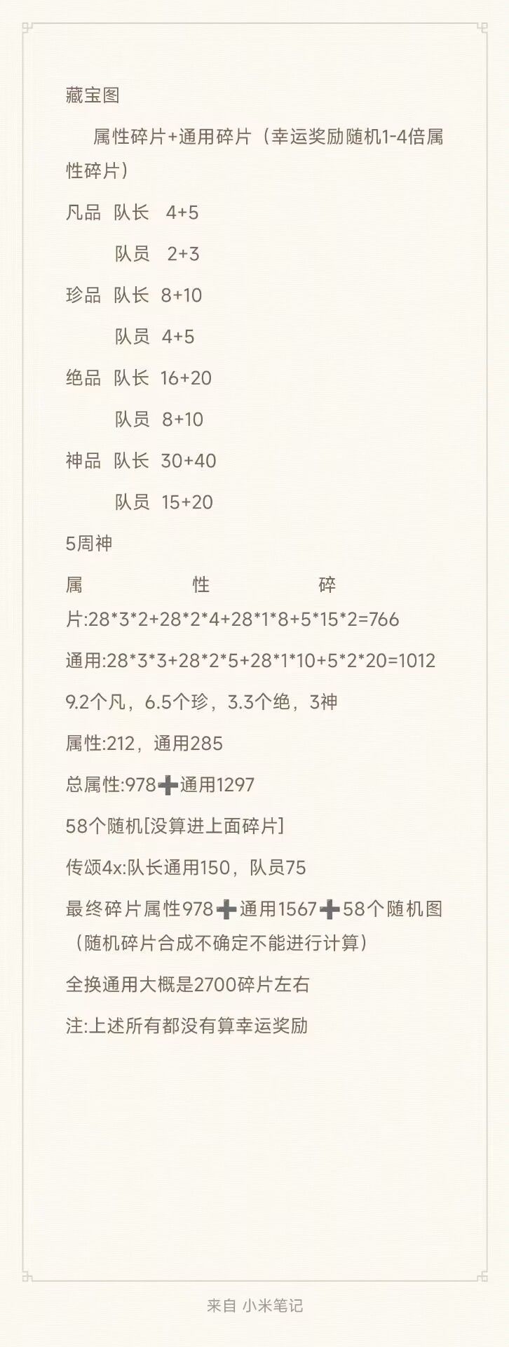 这次藏宝图换成了属性碎片和通用碎片,以下是计算的纯白嫖碎片,具体换啥大家可以比照着看看[表情_开心][表情_开心]