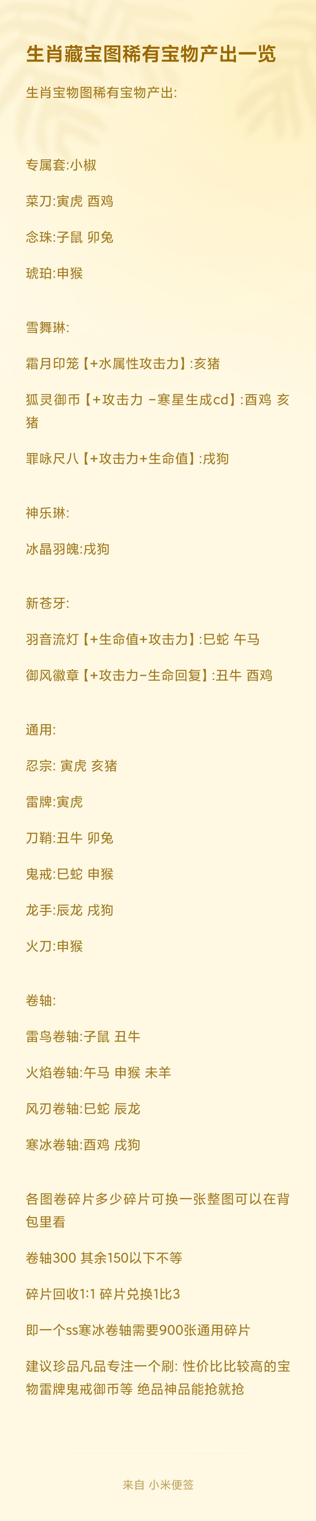 简单整理了下 昨天都是瞎打的 今天才发现藏宝图产出不一样 虎和鸡性价比应该是最高的 有条件的可以把每天给的刷新币尽量把自己高等级藏宝图刷新成想要的属性