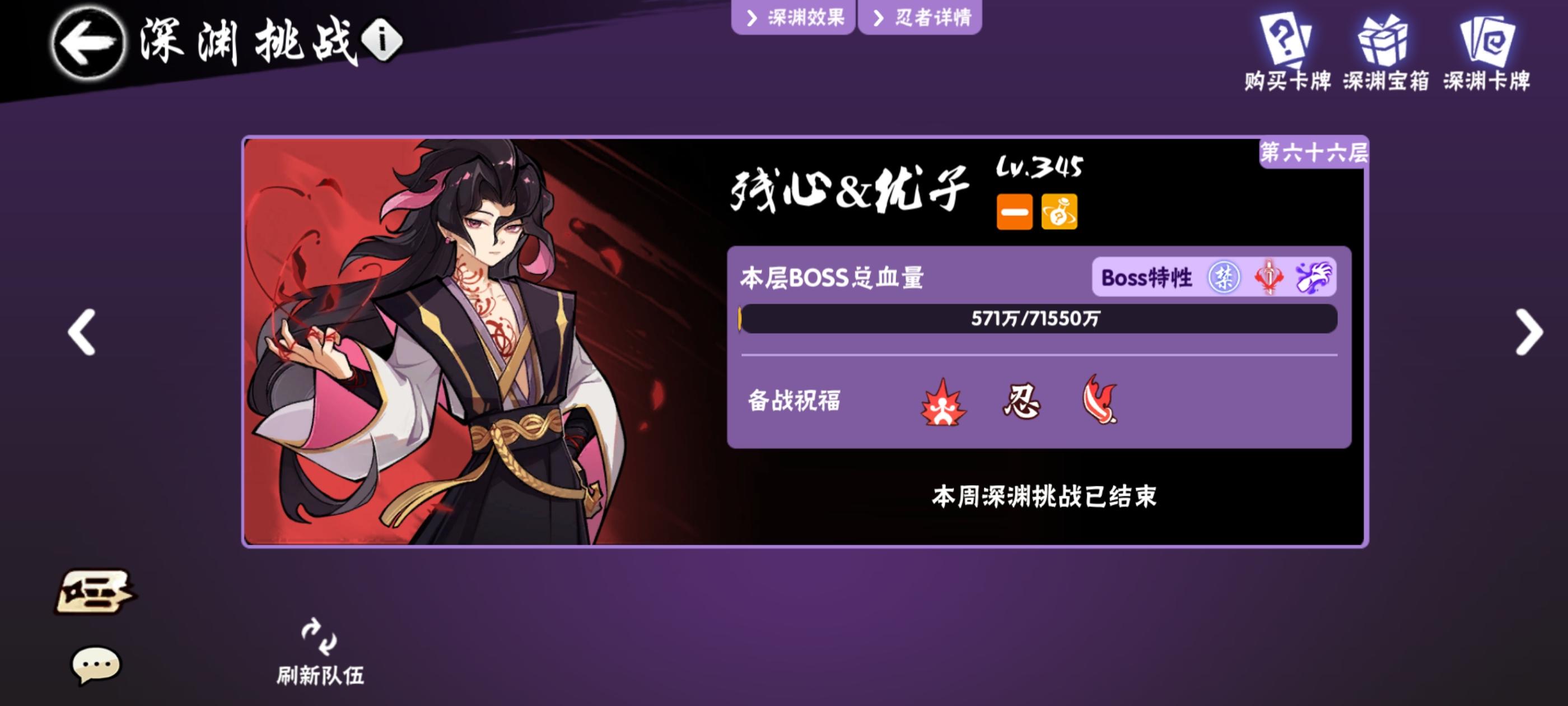超级无敌的属性一赛季见不到一次!爽打深渊74层!!创造忍三最高记录!团长也是直接安排8888大红包!!!!