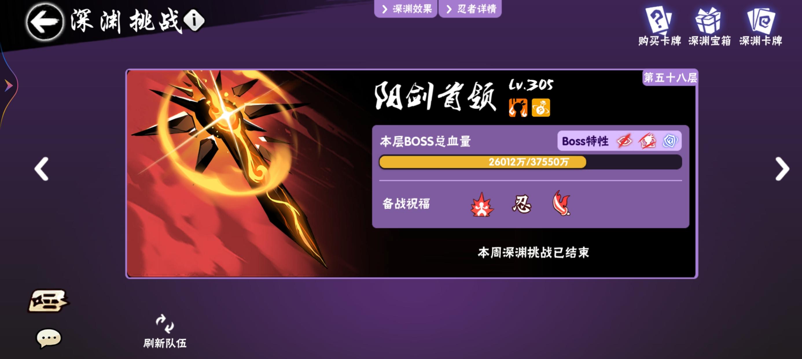 超级无敌的属性一赛季见不到一次!爽打深渊74层!!创造忍三最高记录!团长也是直接安排8888大红包!!!!