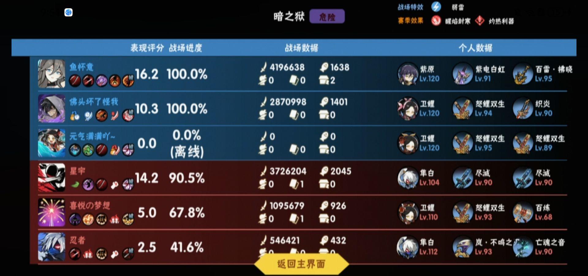 配置如图,深渊族战都能打,大学生时间充沛,团本成绩为早年练习成果,如有需求可康复
