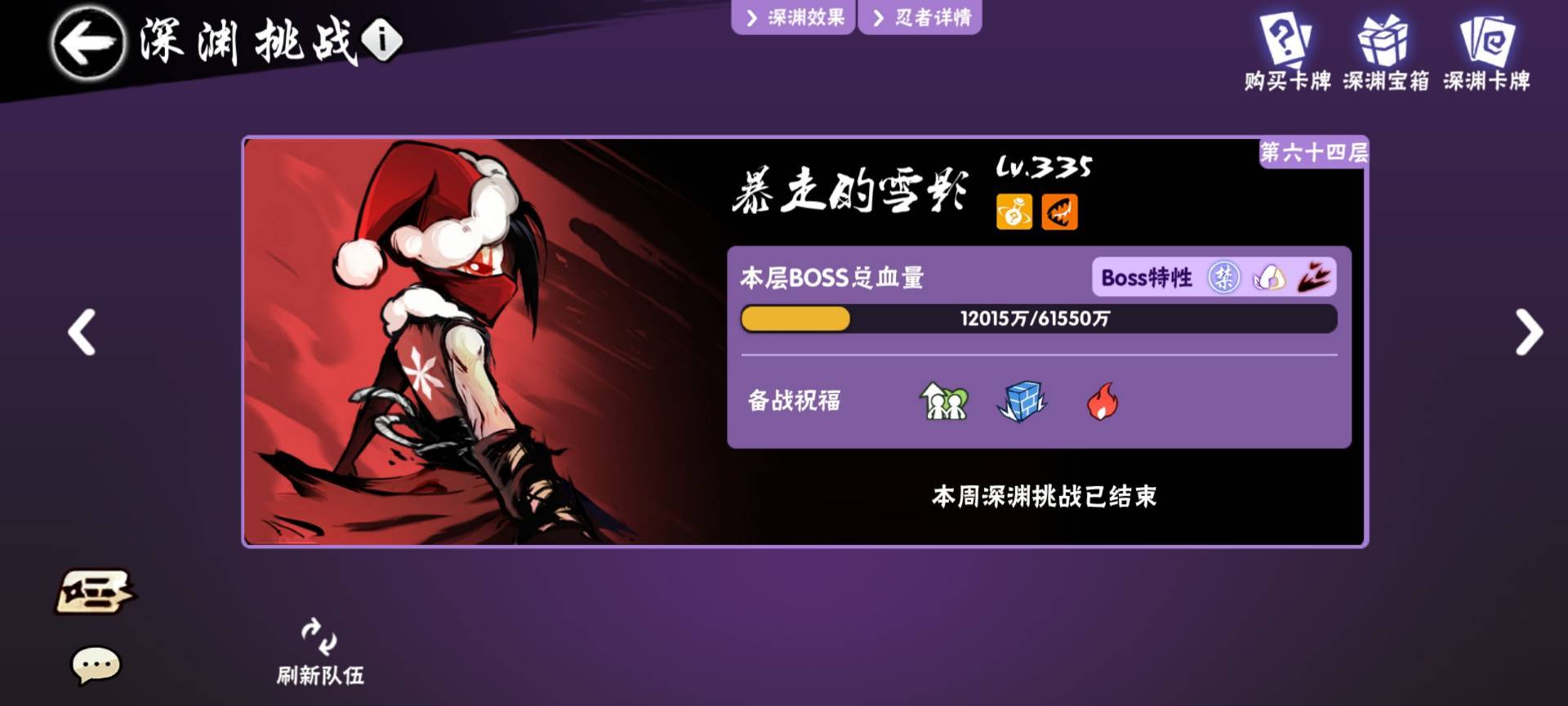 家族深渊稳定64+,超级周可冲68,层数国六积分国七,稳定拿三银头像,家族战目前稳定国前五十,赛区前十(家族不打家族战,随意上去混箱子即可) 配置要求:主角色633+422+211(配置不是主要指标,有特长或者忍抄好也可降低要求) 活跃要求:要求深渊拉满 福利:月底按深渊伤害结算神龙,五六星周及红包,每月1-2次周边抽奖 希望大家在这里玩的开心,欢迎大家的到来