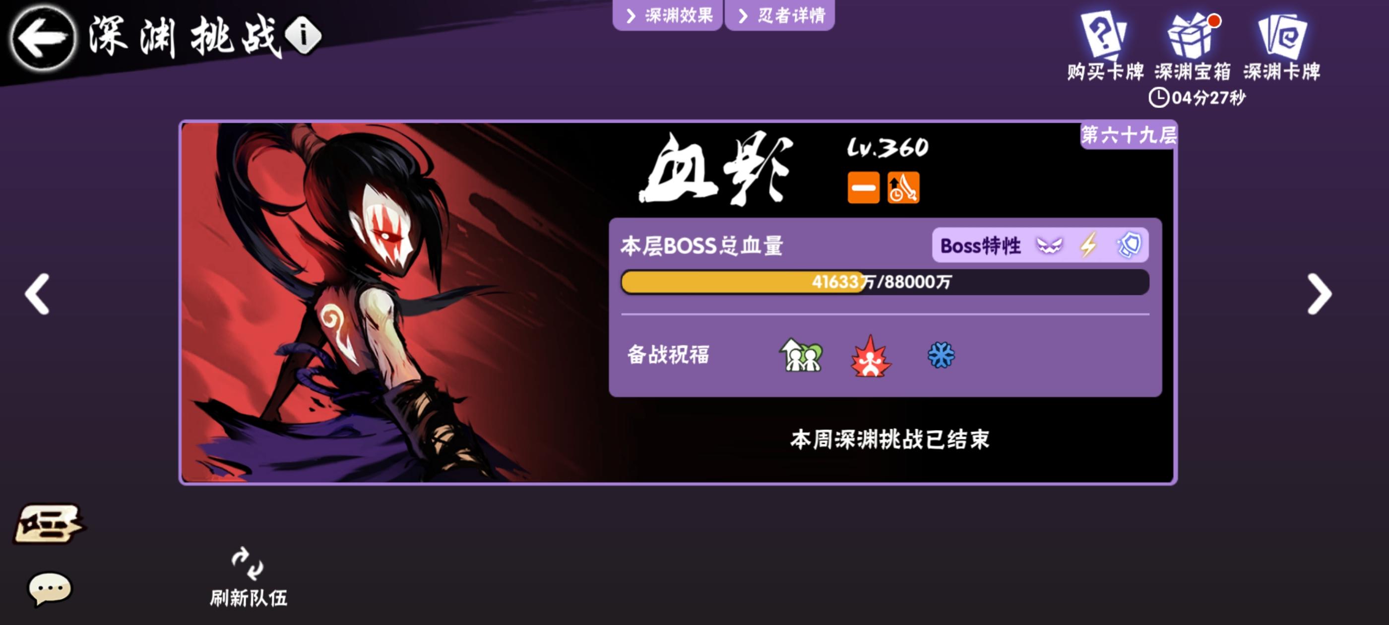 超级无敌的属性一赛季见不到一次!爽打深渊74层!!创造忍三最高记录!团长也是直接安排8888大红包!!!!
