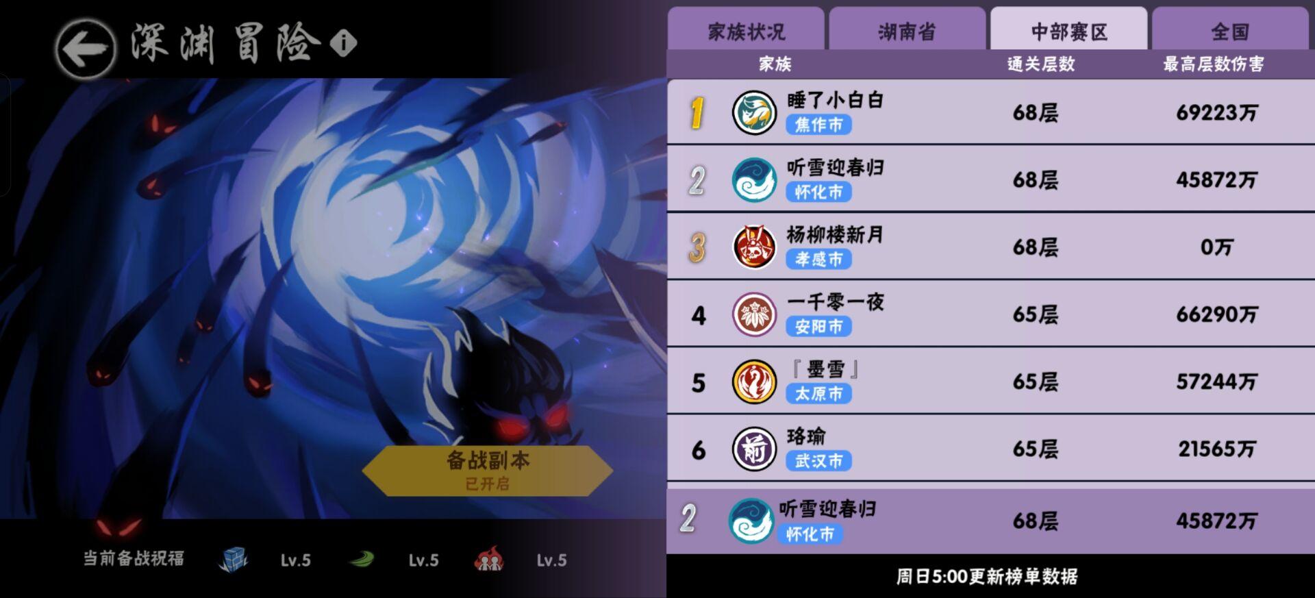 深渊可拉满可进麦,有高层经验,新雷准备了600符还没抽。族战会噩梦,无双练习生