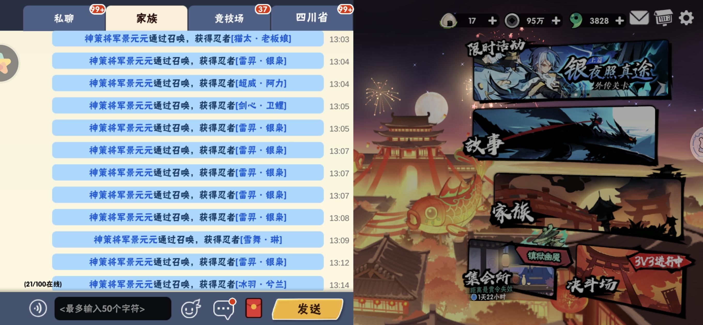 一区十级家族上古九州招人啦!半养老,深渊族战双修,尽量来打就好了。来就是大佬!家族群氛围超级好,深渊稳49,偶尔50。小要求:有至少一个三体人,最好能二大,一大是最低要求。团本练习生,可以放低要求~至少要会跑困难图,危险大佬更加欢迎!深渊族战尽量参加,可以请假#忍者必须死3 #忍者必须死3攻略 #忍者必须死3家族招人 #忍者必须死3七周年 #忍者必须死3话题的视频 高贡献者部分渠道可帮打剧情之类