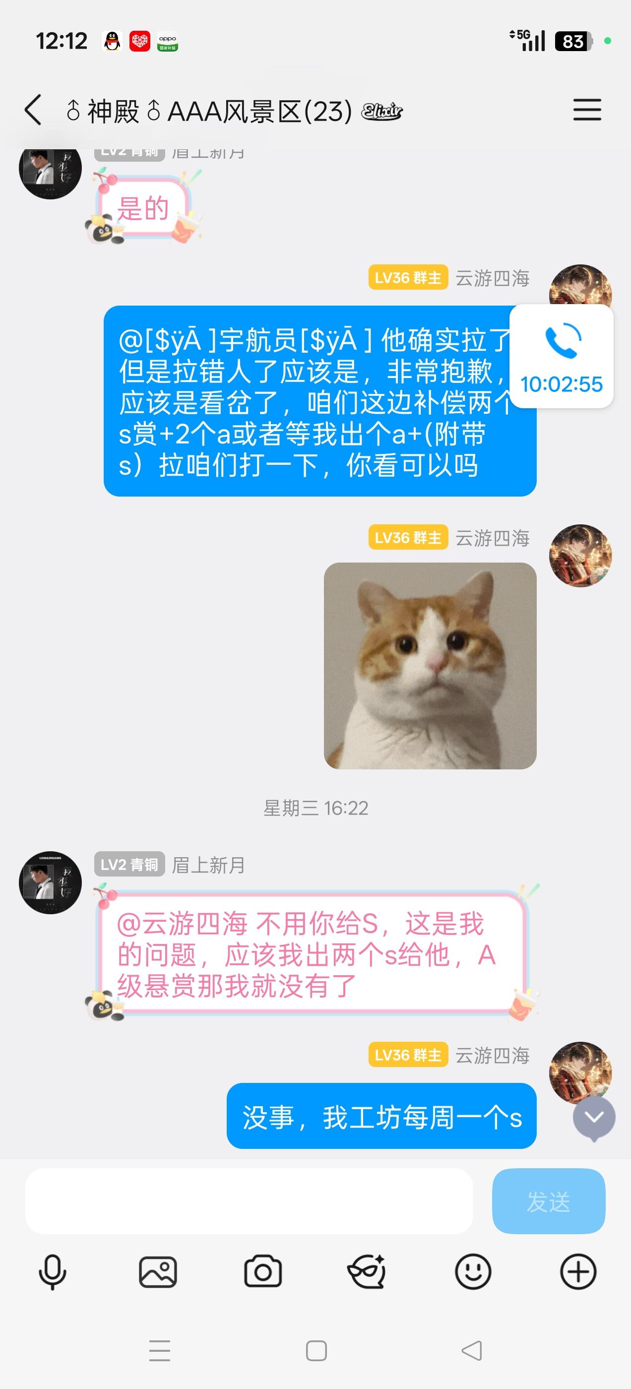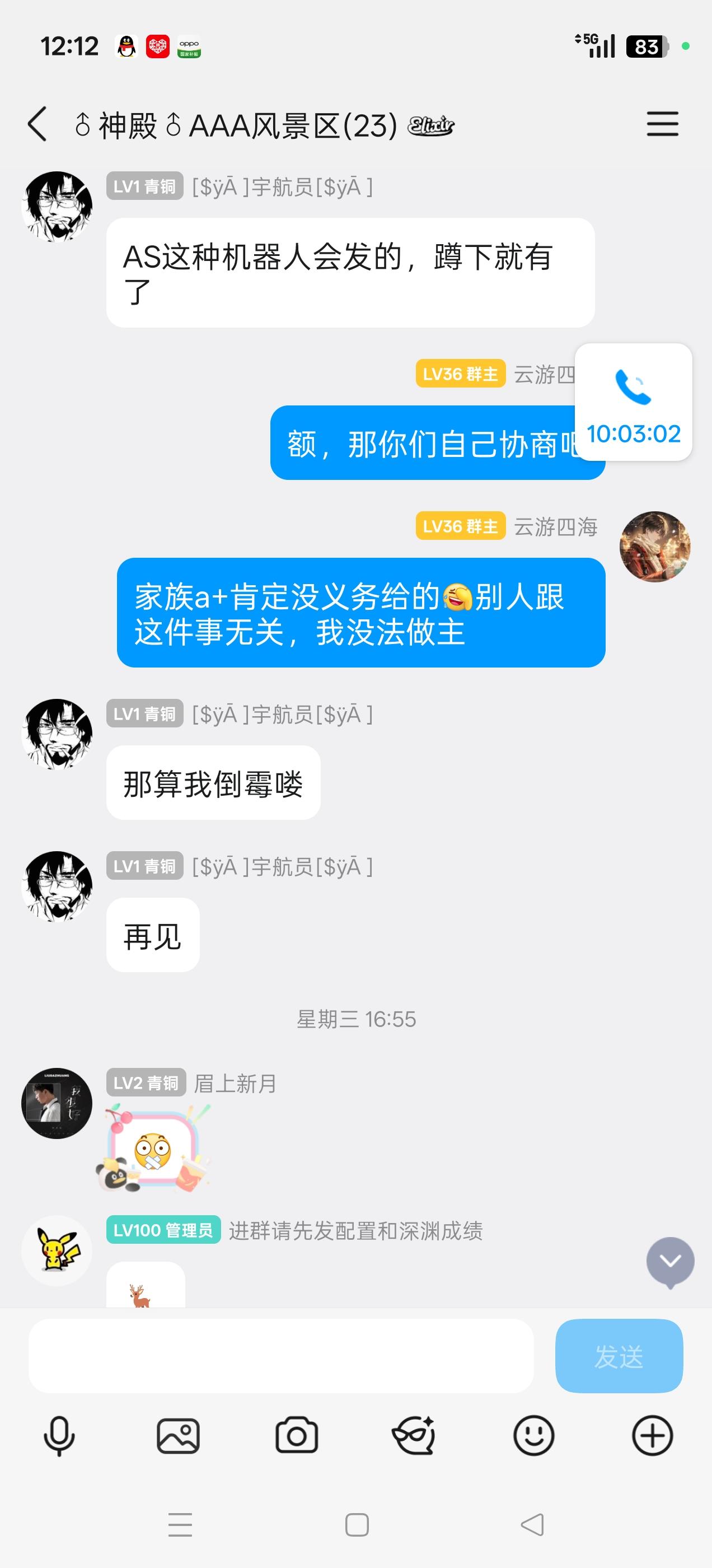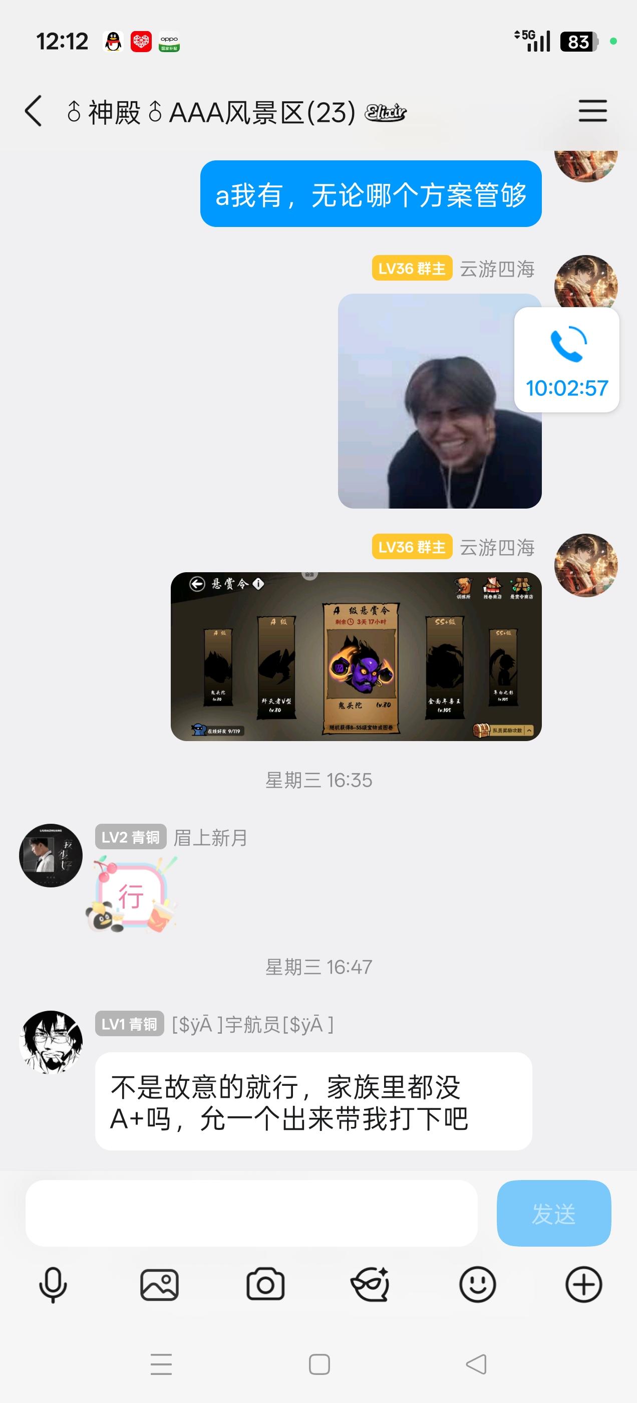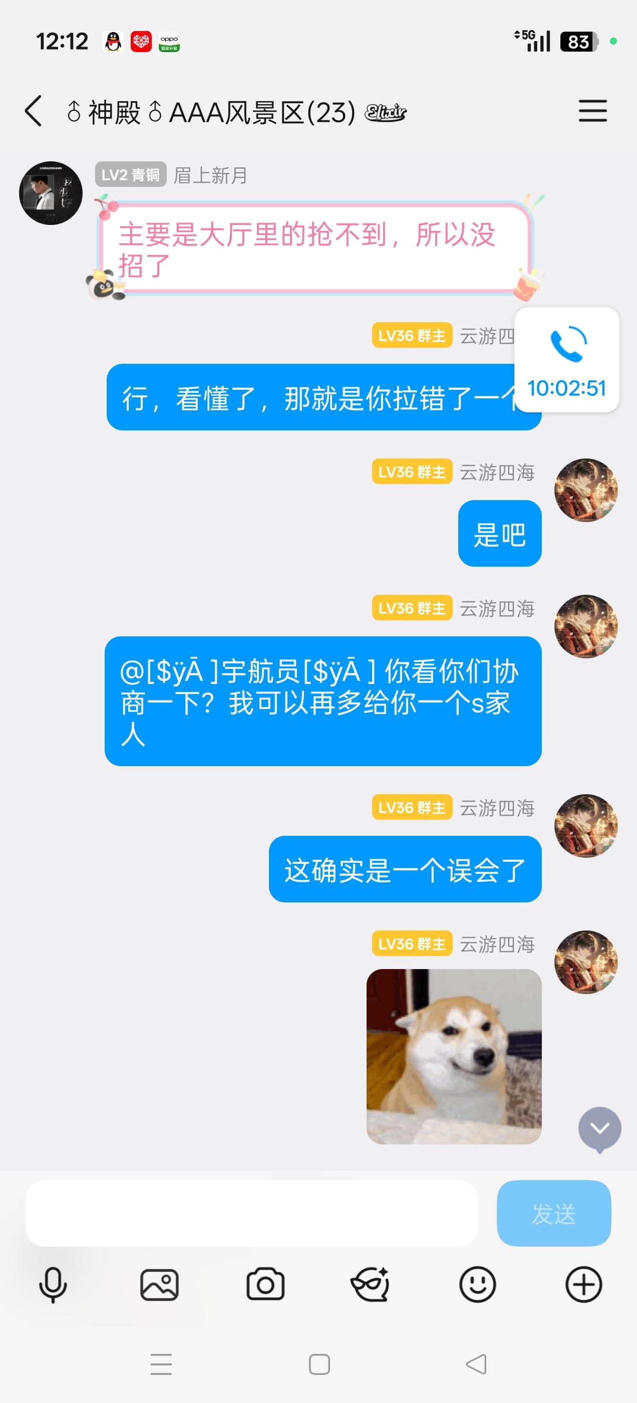 首先进群后我们第一时间接待并联系此族员核实情况,确认情况为误会后进行调节协商,拉错人这种事本身就无关人品只是手误,家族哪怕不处理这件事让他们个人协商我想也是理所当然,家族主动调节提供额外补偿2s2a又或者等出a+顺带补偿s,你不要补偿就要a+也没问题,你让我们家族给你出,家族的其他成员跟这件事无关有什么义务给你补偿a+?我说了家族成员没有义务,你们个人恩怨自行协商,直接自认倒霉退群,然后开始地区,