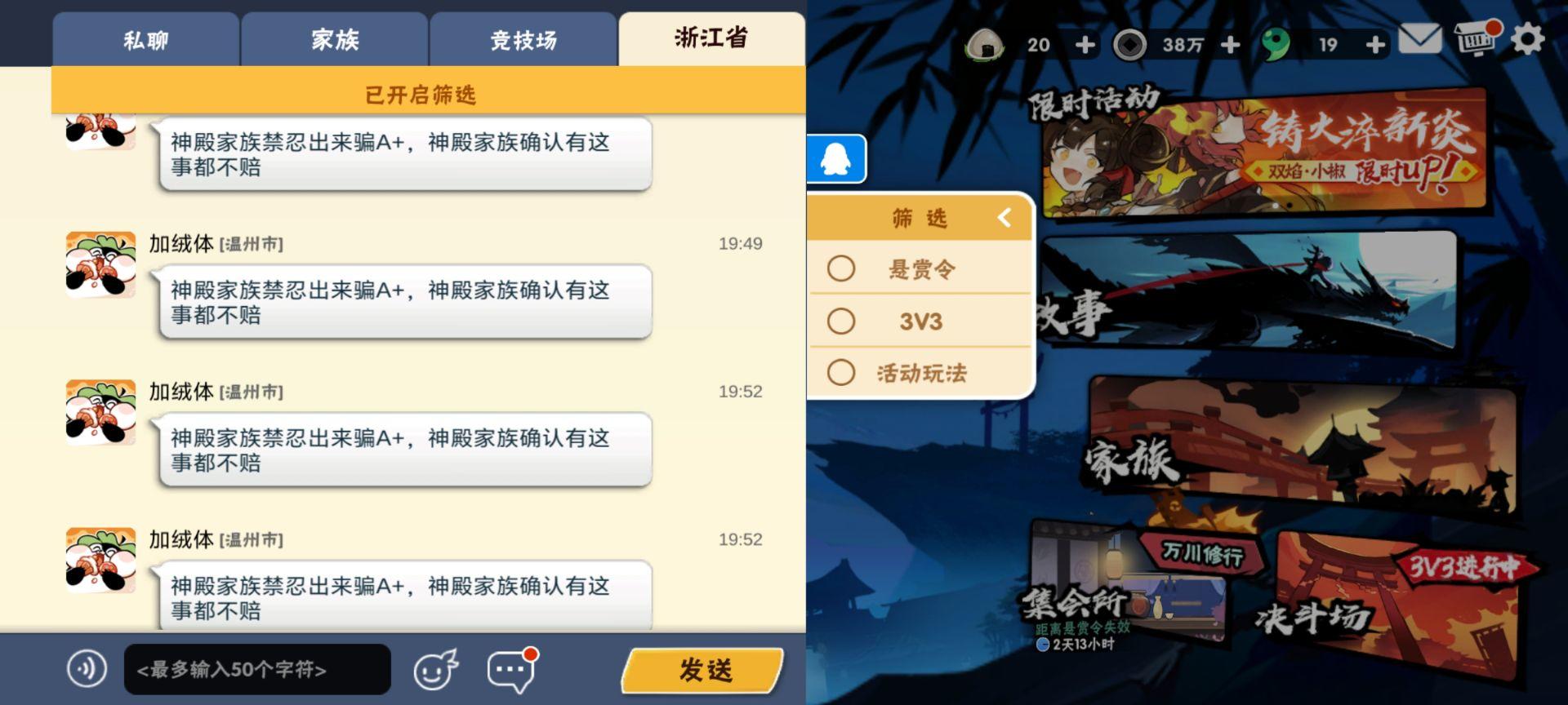 双修家族暮雨晴生新赛季招人! 联赛六届32强 深渊一届百强三届50强 (深渊稳3龙骨)(主七级战场) 家族主QQ,管理到位日常轻松,氛围良好且变态,欢迎志同道合的新老朋友,常驻优先哟 福利(包括但不限于): 每周深渊抽取六星周常。 每周族战抽取小零食。 其他不定期掉落:1、勾玉CDK/2、现金红包/3、剧情抽奖4、竞技场上山/5、活动带框/6、零食抽奖:7、家族私人定制周边奖励 小