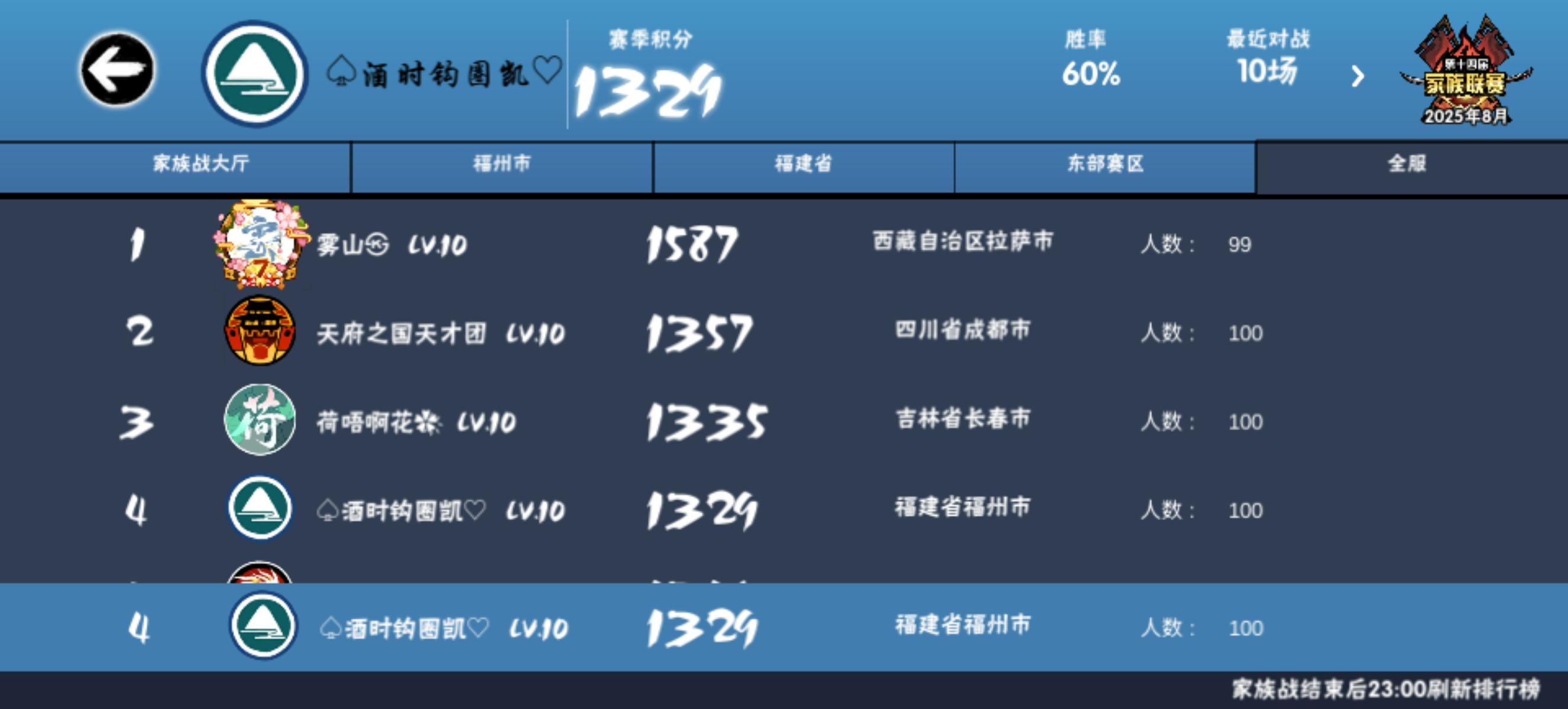 一区深渊家族听雪迎春归招人 家族介绍:深渊常规67层左右 群内活跃氛围好 百人同屏深渊 深渊冲前十 联赛冲32 要求:配置主c命格654以上 常驻可以降低配置要求 深渊拉满没空找机甲 福利:活跃的尽力包周 配置够可帮打活动排名/天元 /剧情 不定时抽jjc/神五/神龙/小礼包 家族接待群937418253