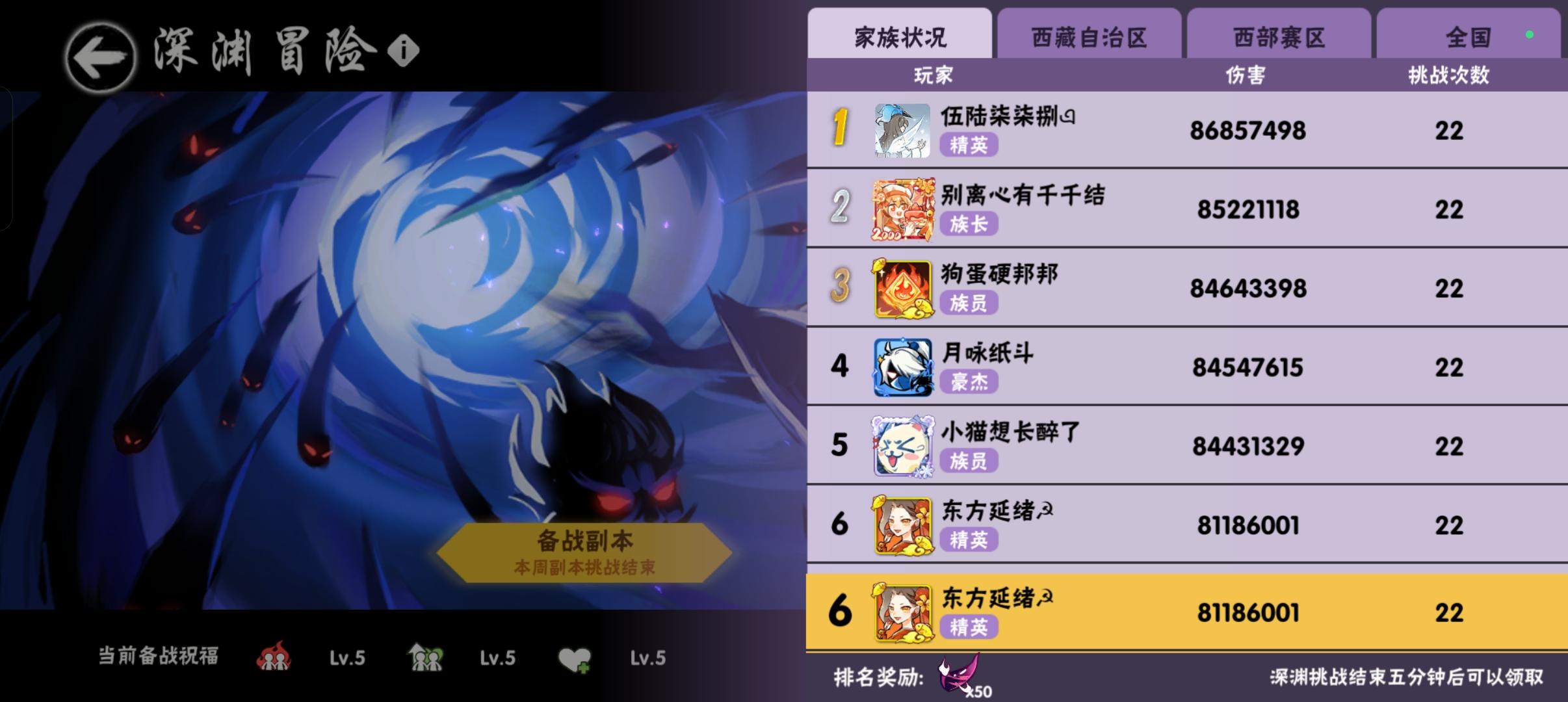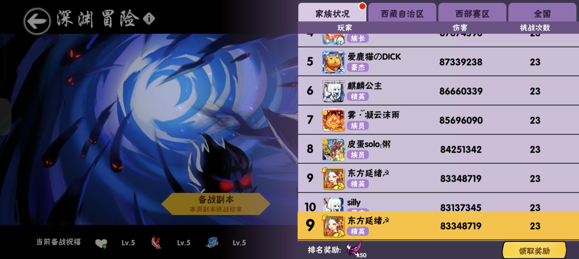 深渊可拉满可进麦,有高层经验,新雷准备了600符还没抽。族战会噩梦,无双练习生