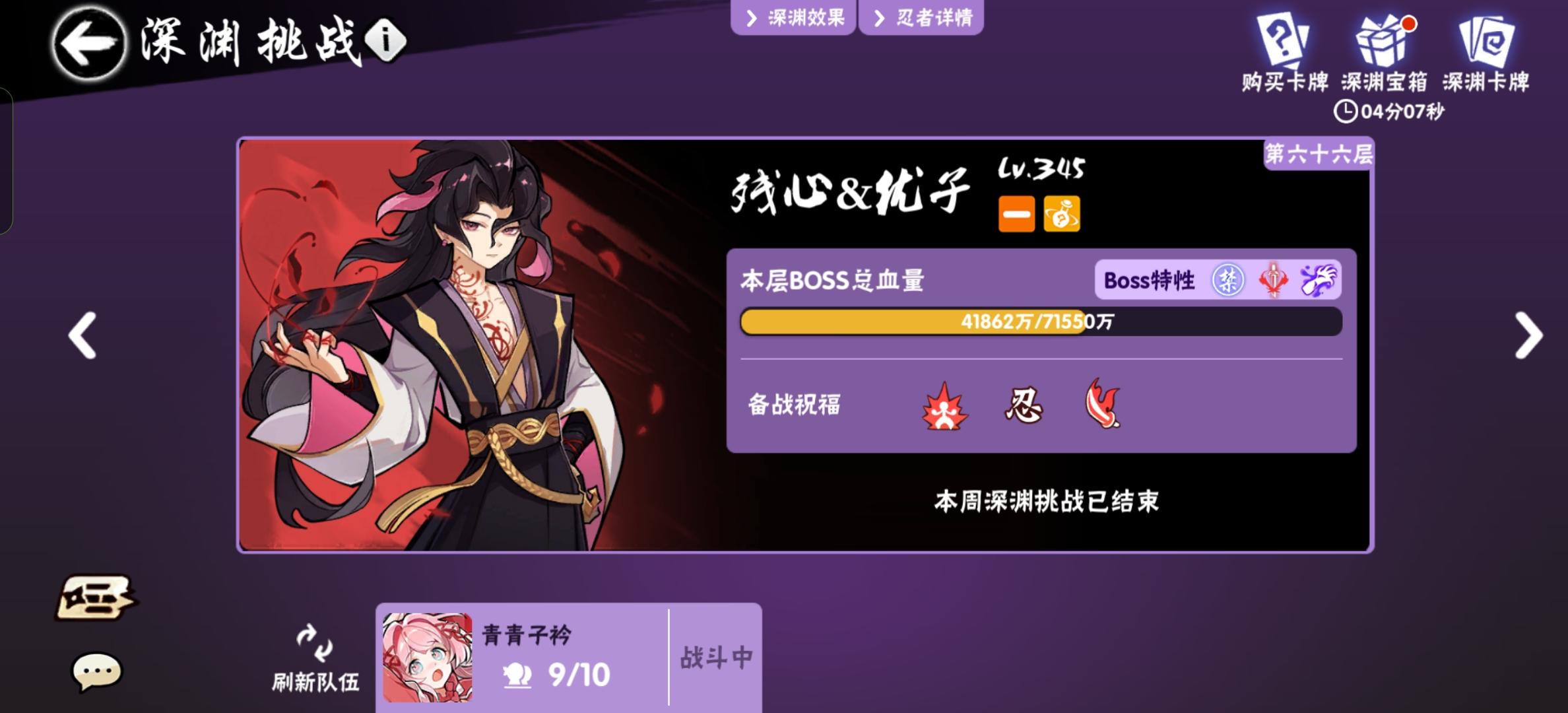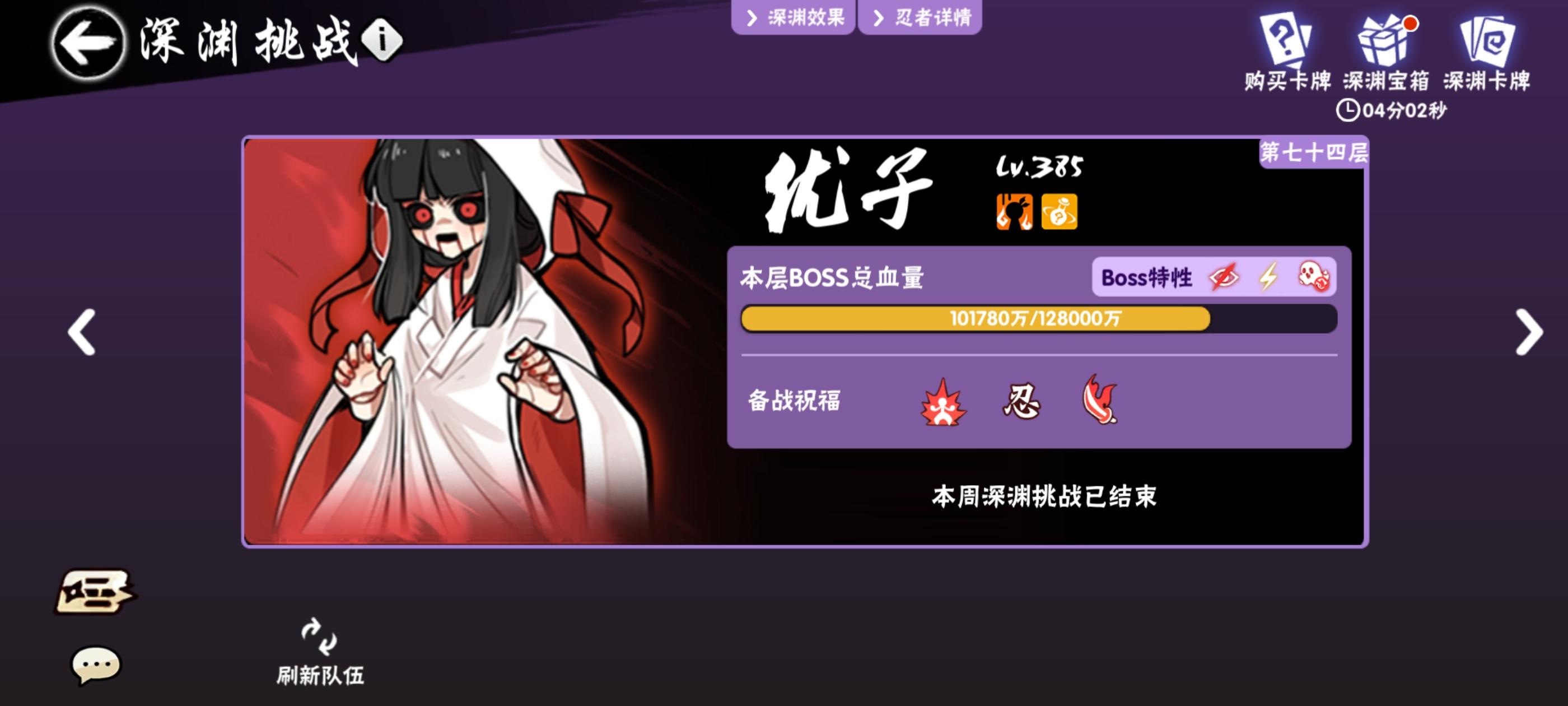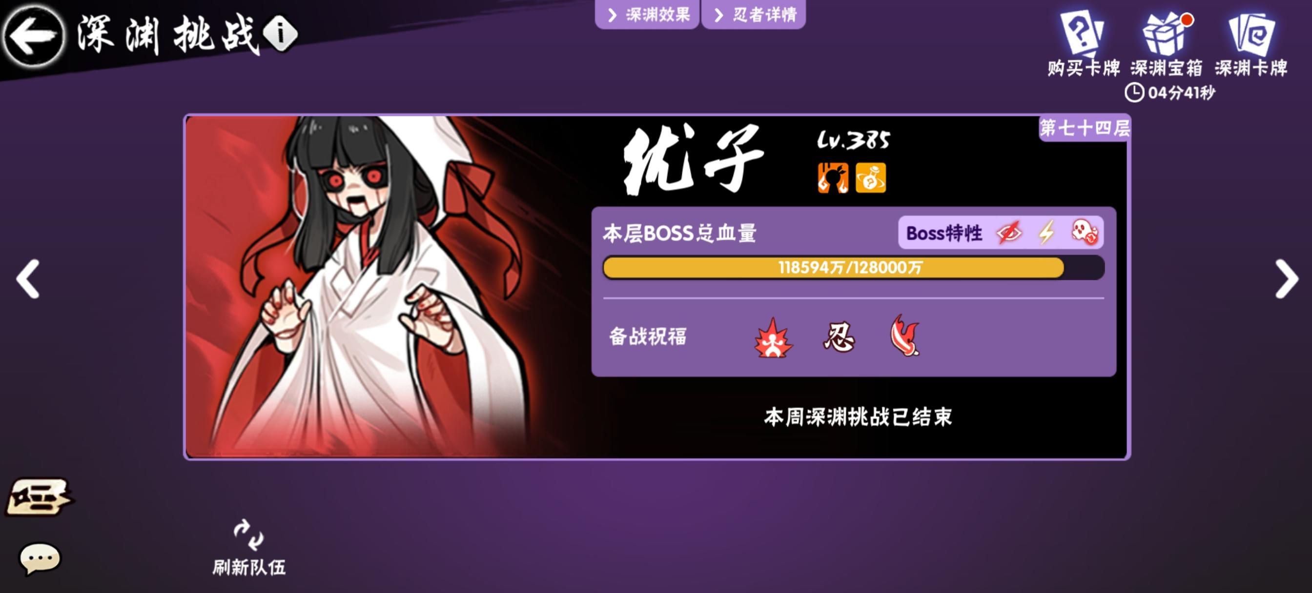 超级无敌的属性一赛季见不到一次!爽打深渊74层!!创造忍三最高记录!团长也是直接安排8888大红包!!!!