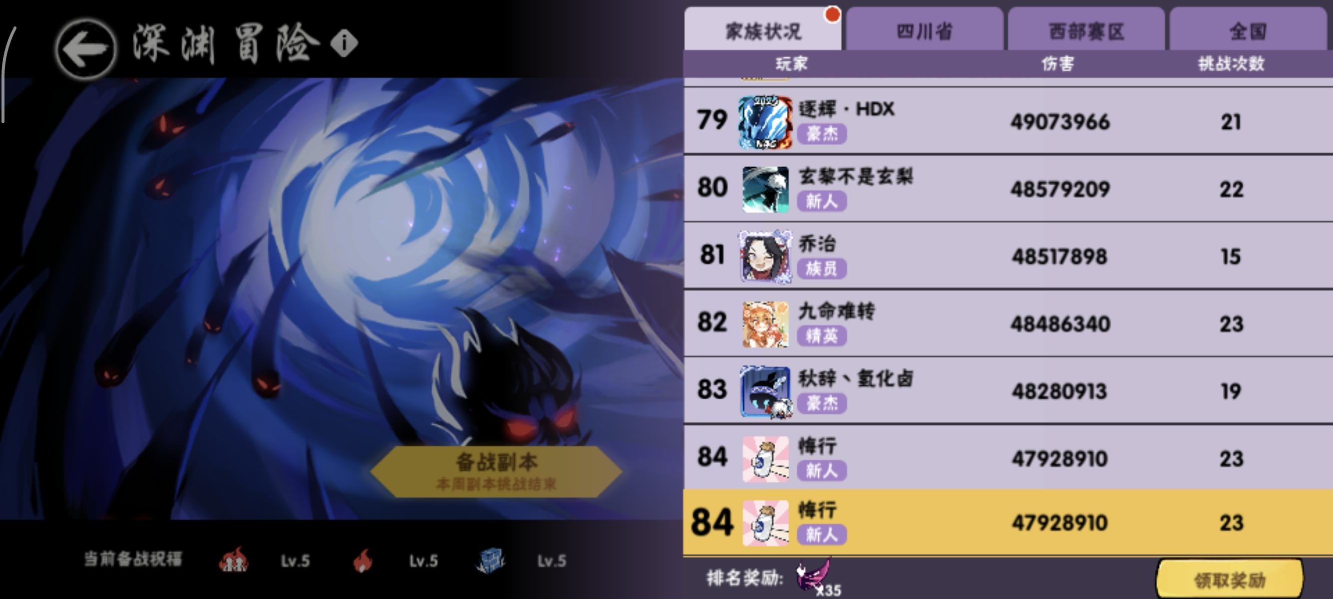 超级无敌的属性一赛季见不到一次!爽打深渊74层!!创造忍三最高记录!团长也是直接安排8888大红包!!!!