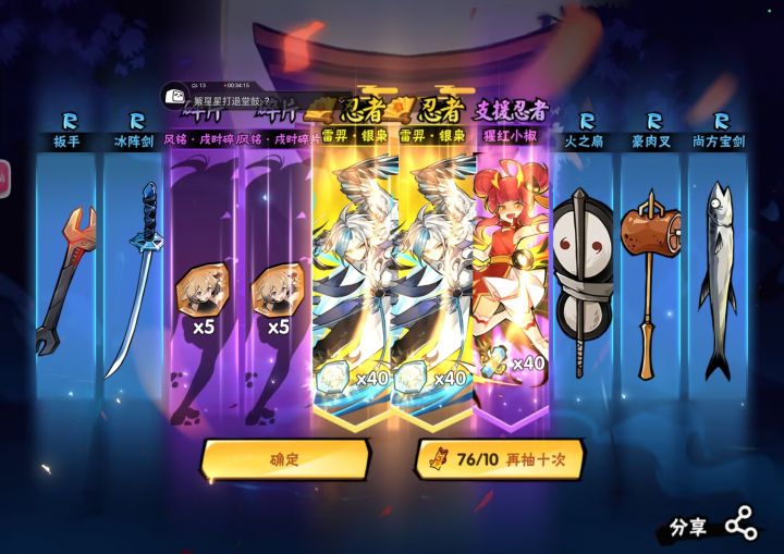 花了30勾玉改命从中吉改成大吉,攒了一年的五百多抽,抽了10把,换了一把,一共11把,做了个100,爽#忍者必须死3七周年