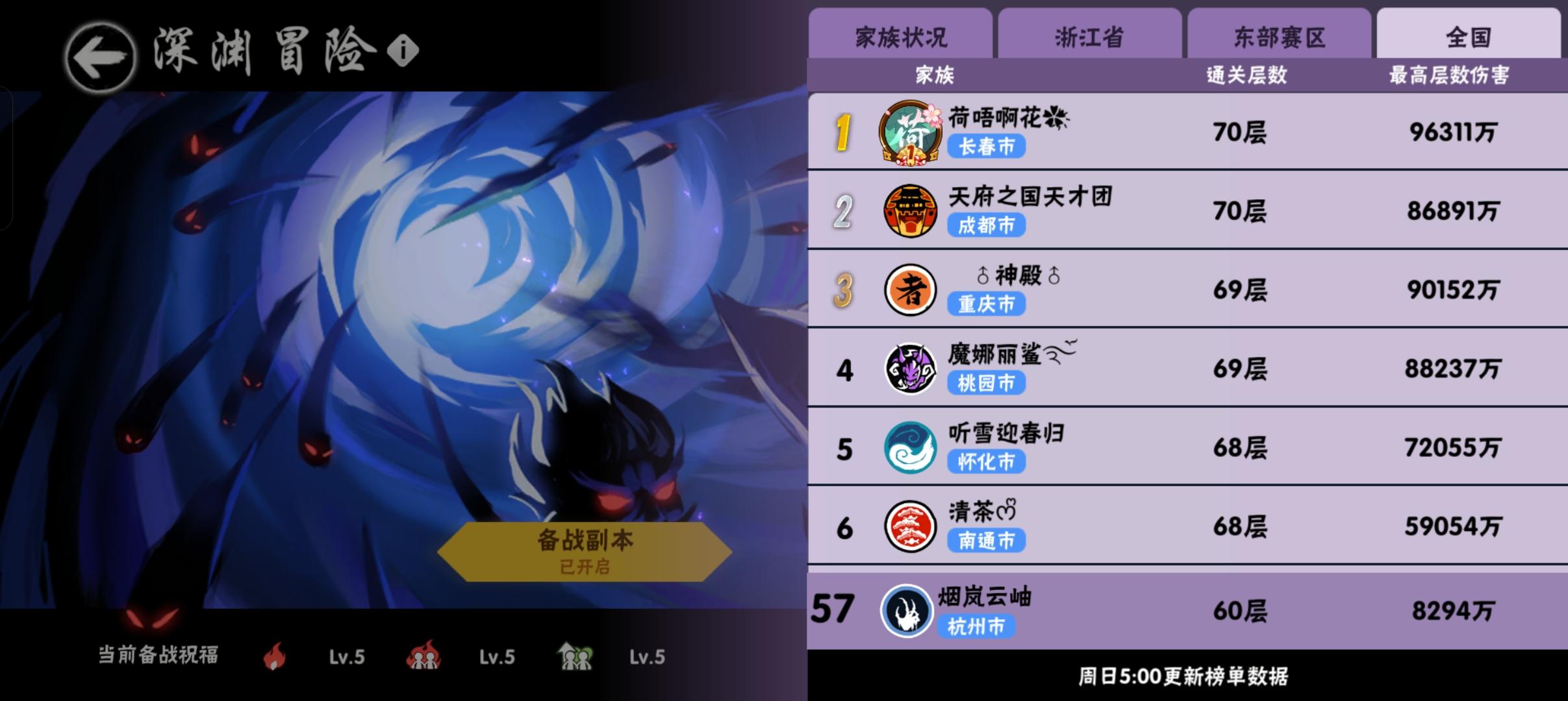 一区60层深渊家族烟岚云岫招人 ⭕️主深渊,族战不要求⭕️族战有人占位置让大家混箱子 (已稳联赛)深渊每个月最多可以请假两回,混三算请假 🧧前28名包周🧧 🧧深渊拉满的人里面抽8个周常🧧(已包周的不抽) 🧧家族也会时不时掉落周常躺位会艾特全体🧧 🧧家族会发五星逆袭躺位,记得看消息🧧 我们欢迎买号新人、回归、跳槽玩家加入,也欢迎小团体入驻 家族活跃,氛围真的很棒,帮过首领、各种活