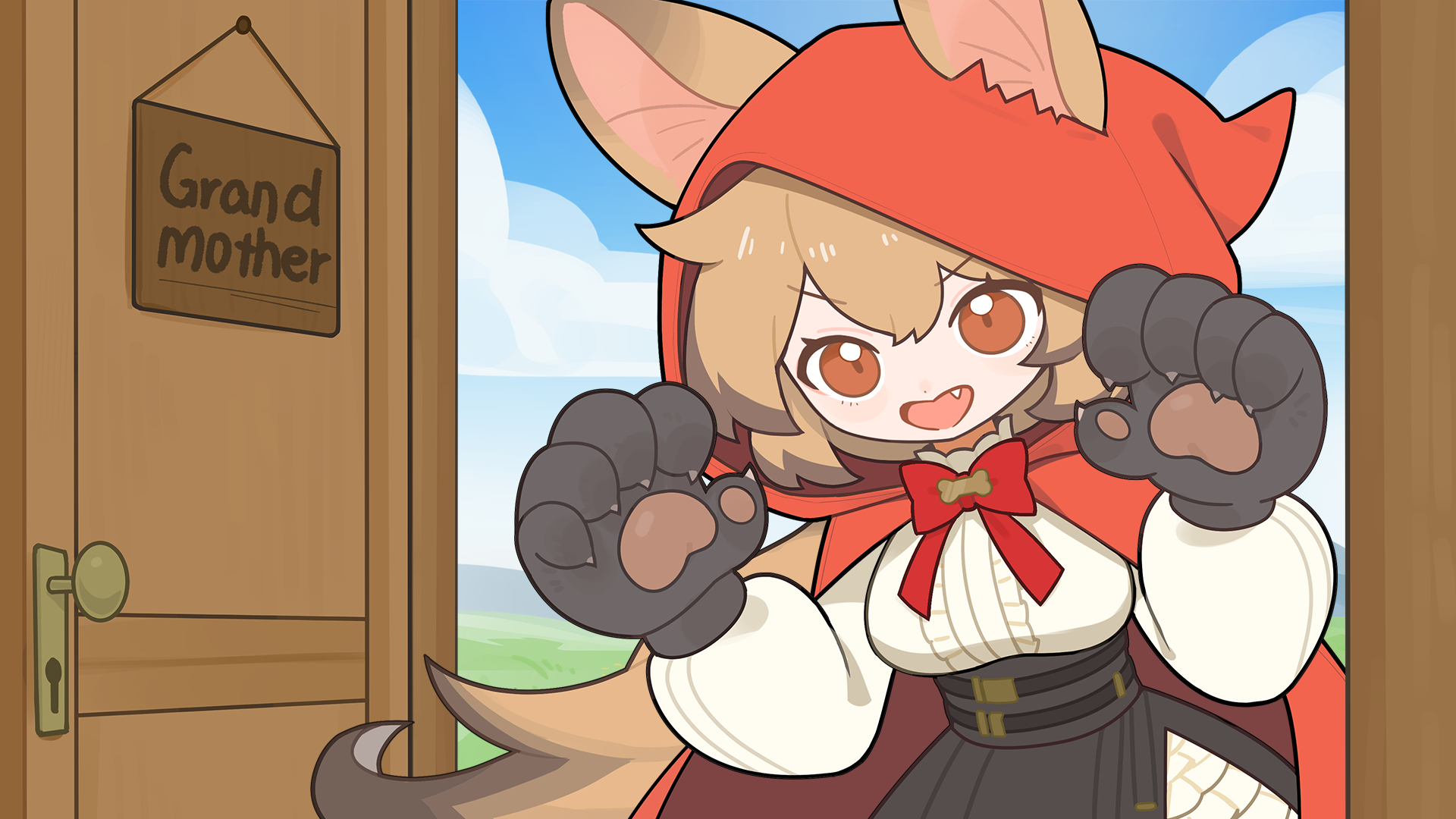 【戌时生日快乐】很久很久以前,在忍界的森林里,住着一只威风凛凛,让所有肉包子闻风丧胆的犬娘「戌时」。为了交到更多的好朋友,戌时伪装成乖巧的小红帽,穿上了红色的斗篷。这位「凶猛」的犬娘把大耳朵藏进红帽子,结果耳朵太有精神,一下子就弹出来了。她又试图藏起毛绒绒的尾巴,可尾巴摇的太欢,根本藏不住。她伸出软软的肉垫,敲响了木门——「嗷呜,外婆外婆,我真的是小红帽呀!」门开了,屋内是早就准备好的生日