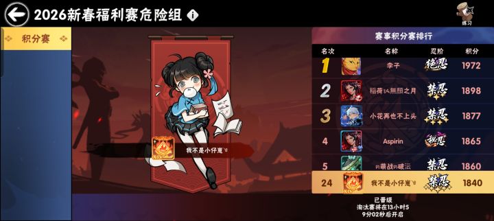 恭喜27楼,15楼,32楼,4楼,40楼忍忍中奖!请忍忍在2月4号之前带着主页和转发评论此贴的截图在任意比赛群内寻找竹叶青领取cdk奖励~ 你还记得初入忍界时,第一次战斗时的悸动吗?还记得和同伴并肩特训的日夜吗?这一次,忍村五虎坐镇忍村试炼,要同诸位忍忍共同检验修行成果!是时候带上你的忍道与过往,前来应战!欢迎大家报名!我们会在评论转发本帖,且进群参加比赛的忍忍中,随机抽5位幸运玩家送上2