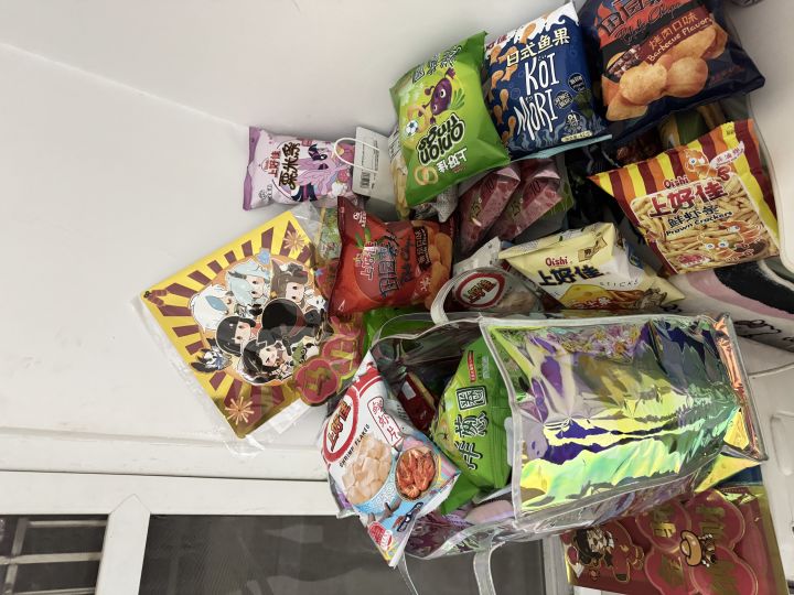 我的新年礼盒不仅有一堆堆零食,还有有可爱猫咪!是不是周边小哥哥把小狼哥哥给我寄过来了!哈哈哈哈哈哈(是我的圆宝!她超爱这个小窝窝)