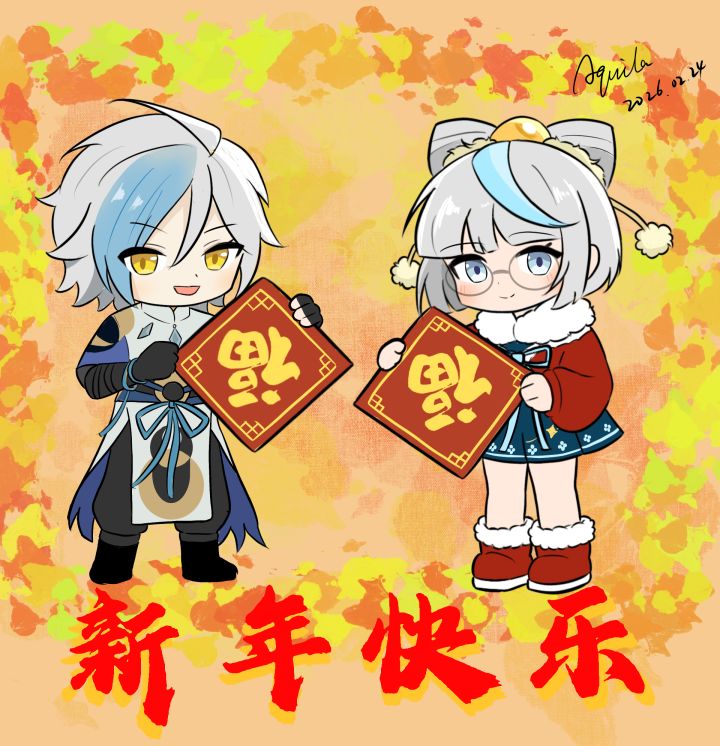 本来想画兄妹+双椒,四个人举着“恭喜发财”,deadline战士由赶不上了,只好给兄妹画个福字hhh服装参考官方新年贺图!小夜夜的小棉袄太可爱了www#忍者必须死3 #忍者必须死3银枭