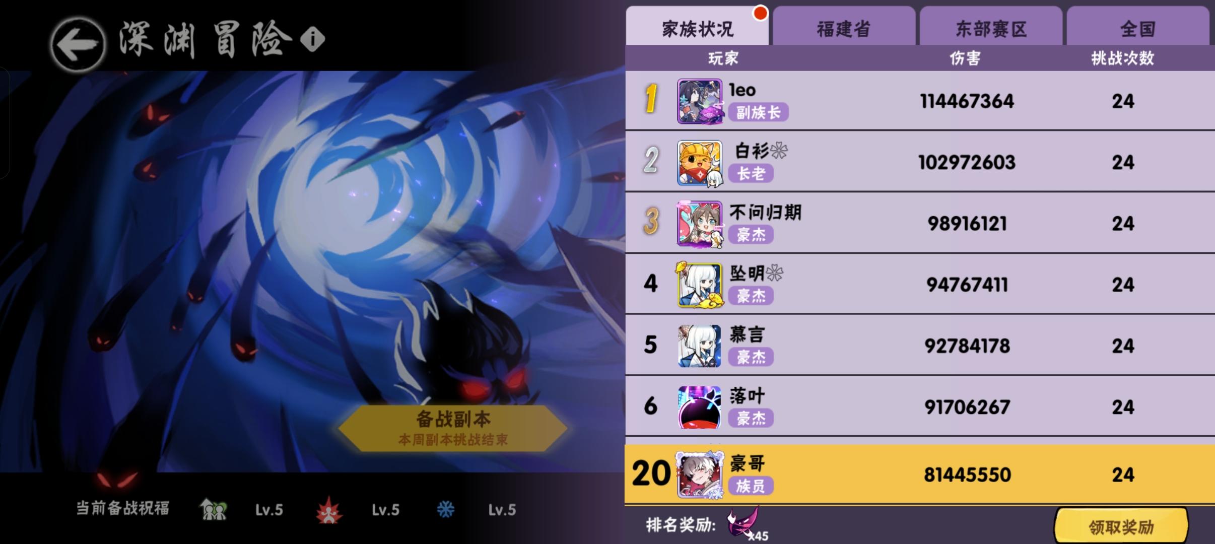 一区60层深渊家族烟岚云岫招人 主深渊,族战不要求,占位置让大家混箱子就行 每个月最多可以请假两回,混三算请假 🧧前26名包周🧧 🧧深渊拉满抽9个周常🧧(包周不抽,提高大家中奖率) 🧧有些比较急的6星也会直接在深渊拉满抽奖群里艾特全体,谁先来谁躺🧧 ☺️欢迎新人、回归、跳槽玩家加入,也欢迎小团体入驻☺️ 😎感觉自己配置够了就来问问,群里都会热情接待的 😎 家族活跃,氛围真的很