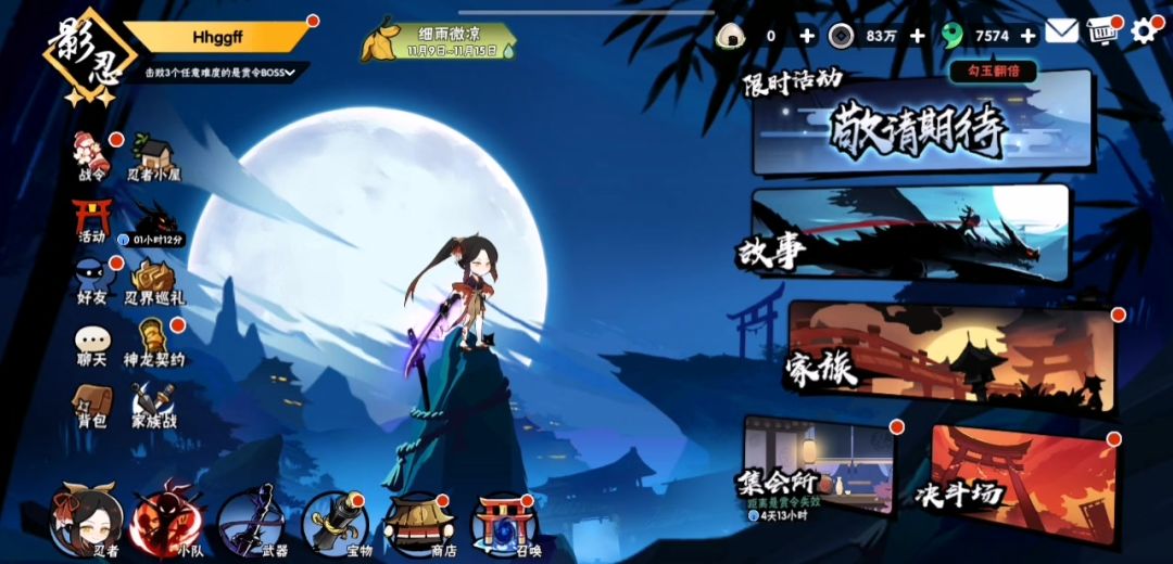 「第十三章·序」拉开帷幕,全新BOSS等待忍忍挑战!全新连携作战忍者「兮兰」、「银铠紫电」主题幻化等系列版本活动登场!「鹤鸣之野·讨伐异鬼」活动来势汹汹,还请忍忍们仗义出手,替兮兰完成清剿任务吧!更有特殊BOSS等你来战! 别忘了从今天起,每日登录游戏可以获得一次免费召唤兮兰的机会,最多可获得十次免费召唤机会!
