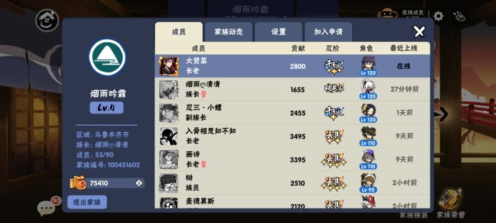 家族氛围很好的一个小家族(个人目前遇到过最好的一个,大概有点主观吧),族战深渊不打的可以请假(最好不要一直不打),欢迎萌新大佬加入,极度缺人!!!#忍者必须死3 #忍者必须死3二区招人 烟雨吟霖欢迎您的到来!