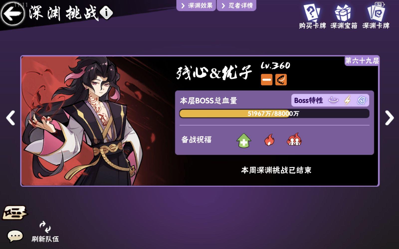 超级无敌的属性一赛季见不到一次!爽打深渊74层!!创造忍三最高记录!团长也是直接安排8888大红包!!!!