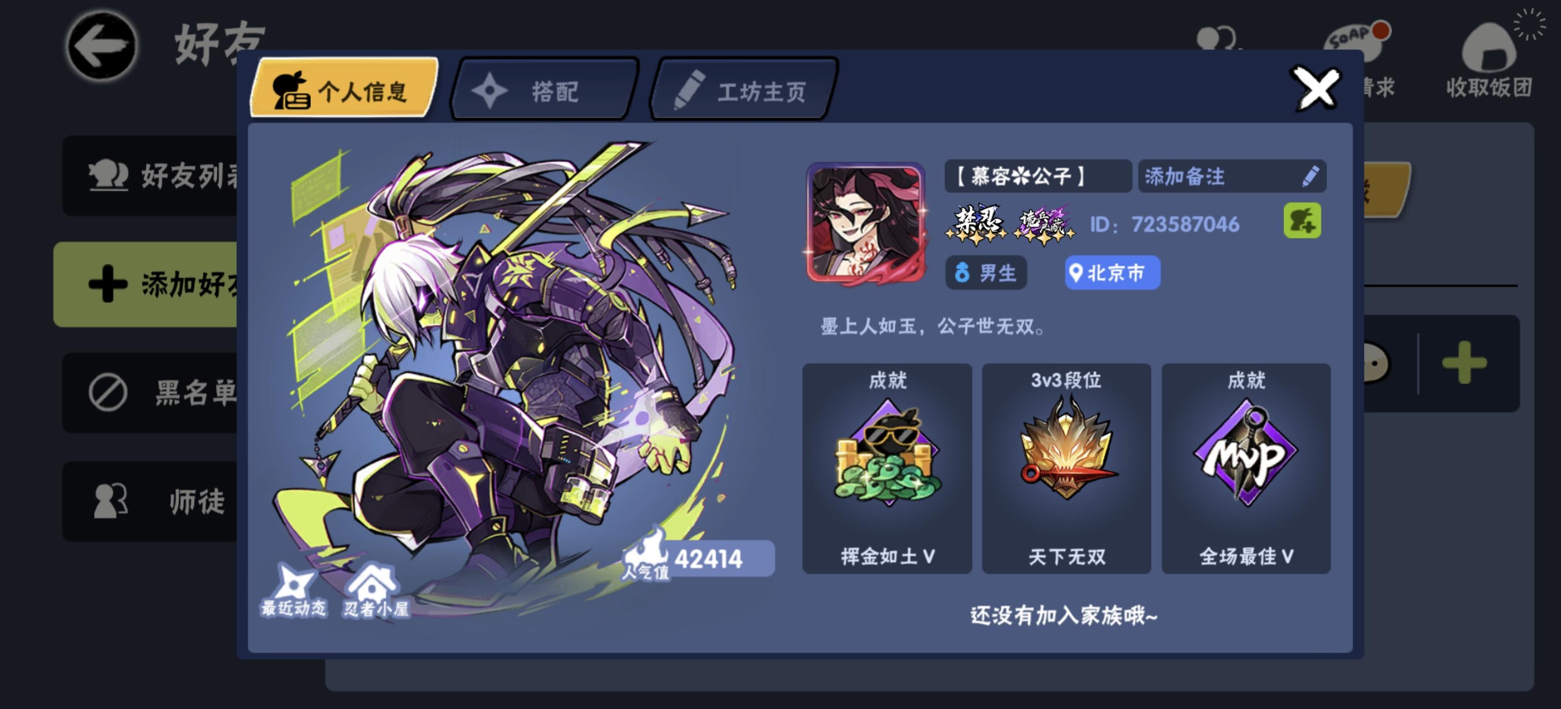审核q群:239077907 族长vx:15335743501(qv分批管理)深渊稳66+冲69+ 家族招人 (1区杨柳楼新月) 小小要求:命格6+5+4,忍宗/抄3+3+0(具体审核群来商量,没有那么绝对但有一定的要求)。只收常驻,不能在周三-周五退家族,能接受的来。 1.建家族的初心是重视到每一个人,希望大家都能愉快玩耍。不一味追求成绩,但是深渊需要好好打,大家的游戏体验需要人数和质量(