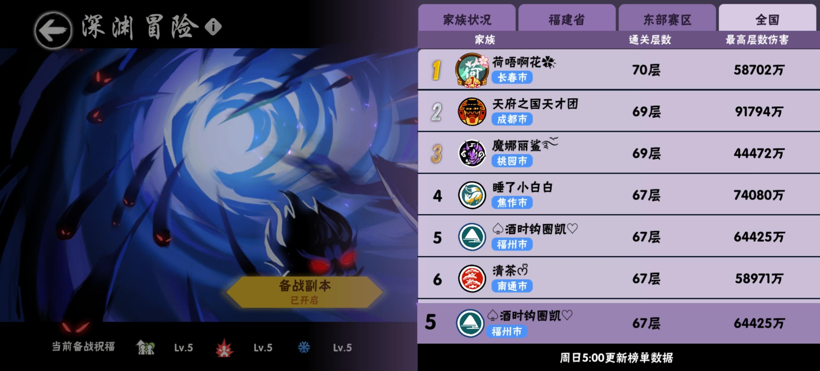 深渊S15赛季啦,910JQK招人~双修家族,上届联赛八强,深渊总榜国八诚招高顶配机甲号/33高手/纯深渊选手/团本能手团本标准线:西瓜317 蝙蝠395 河豚195神木130 金币3070 礼袋75 烟花80 森林2400(八选六即可)福利详谈,可提供团本账号练习深渊S15W7国五金头,已过67三个新箱子纯深渊选手要求如下:1. 态度端正,稳定听指挥拉满,来不了要请机甲师,周五前打