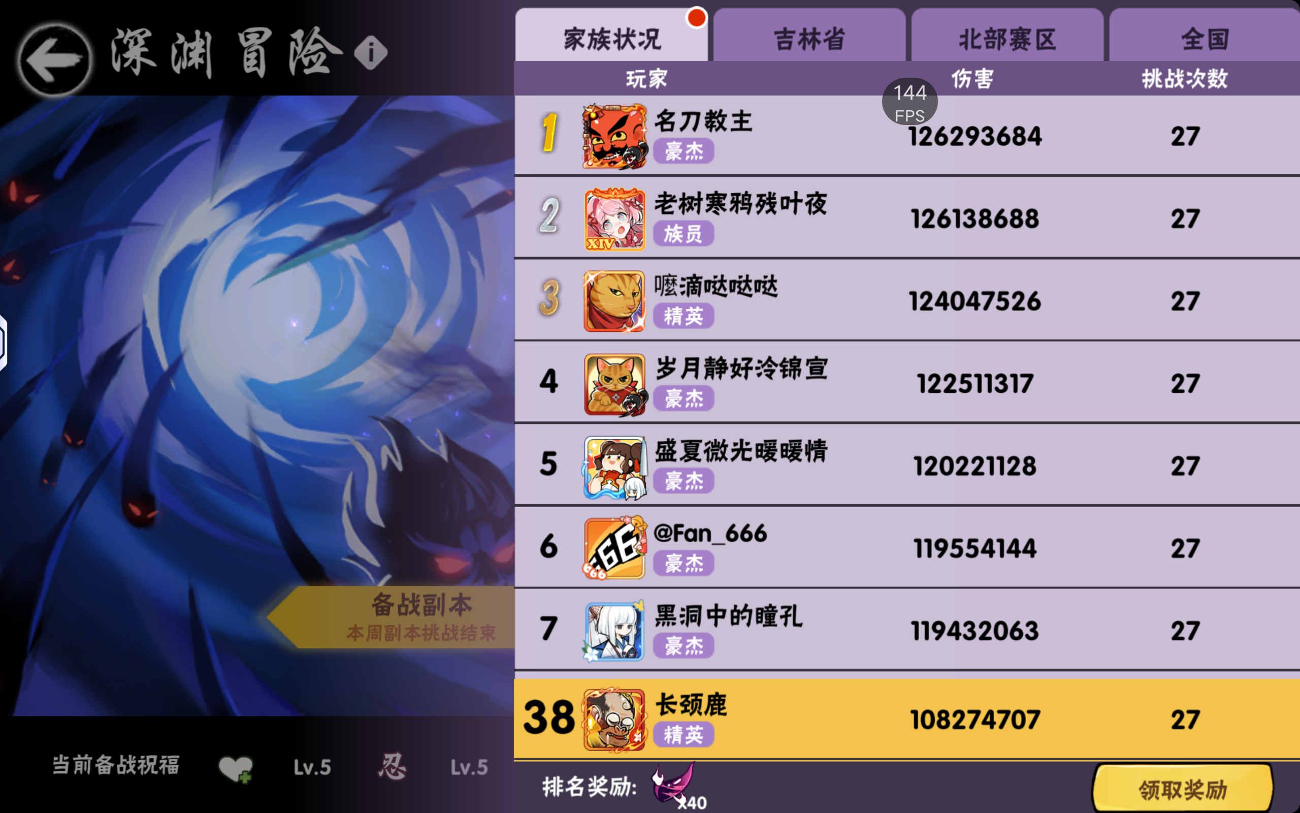 一区深渊家族听雪迎春归招人 家族介绍:深渊常规67层左右 群内活跃氛围好 百人同屏深渊 本赛季冲前十要求:配置主c命格664以上 常驻可以降低配置要求 深渊拉满没空找机甲 福利:活跃的尽力包周 配置够可帮打活动排名/天元 /剧情 不定时抽jjc/神五/神龙/小礼包