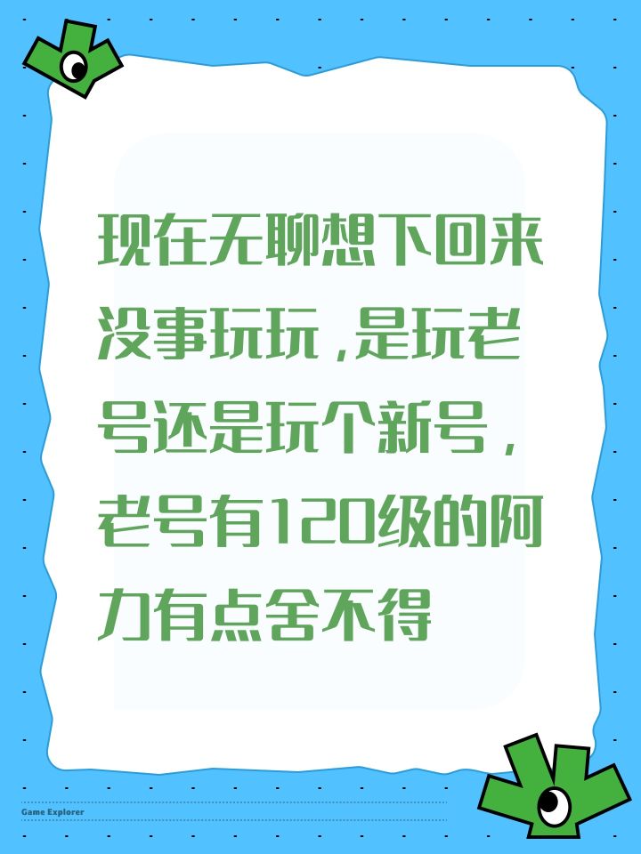 现在无聊想下回来没事玩玩,是玩老号还是玩个新号,老号有120级的阿力有点舍不得