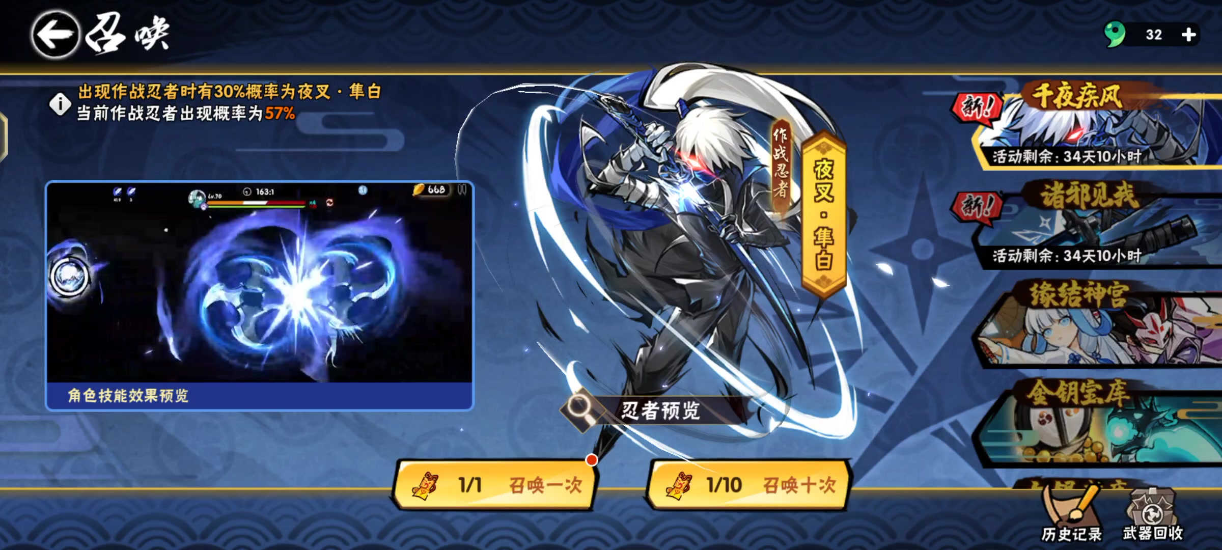 #忍者必须死3 #忍者必须死3六周年 这是人干的事,看见隼白回来抽老本,结果就第一发金是隼白,第二金发卫鲤还行,第三发金直接最普通的小椒、我还想二比二抽歪两个顶天了,结果第四金发出的来个洛青!4金就1隼白。 诛邪见我本来想给隼白先来个武器,也抽歪一个天晶若无。直接原地破产了,武器也没有,现在就一个隼白。太酷了。