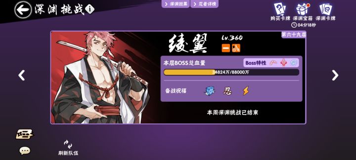 深渊/族战都玩,深渊62-65层,积分赛全国15福利:拉满深渊就包周常,有事可适当请假,高顶配包33无双/天元前千,剧情和逆袭头像,其他成员享受超低33无双,剧情和逆袭头像,每周深渊还会根据排名有💰/周边/免费剧情等大量抽奖